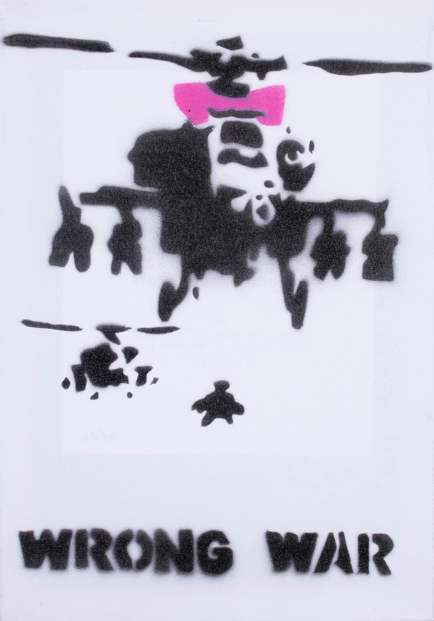 Scritta e firma al verso sul risvolto della tela: Enjoy your free art / Banksy is Dismal!; sulla tela: cartiglio Dismaland con tiratura 4/20.
