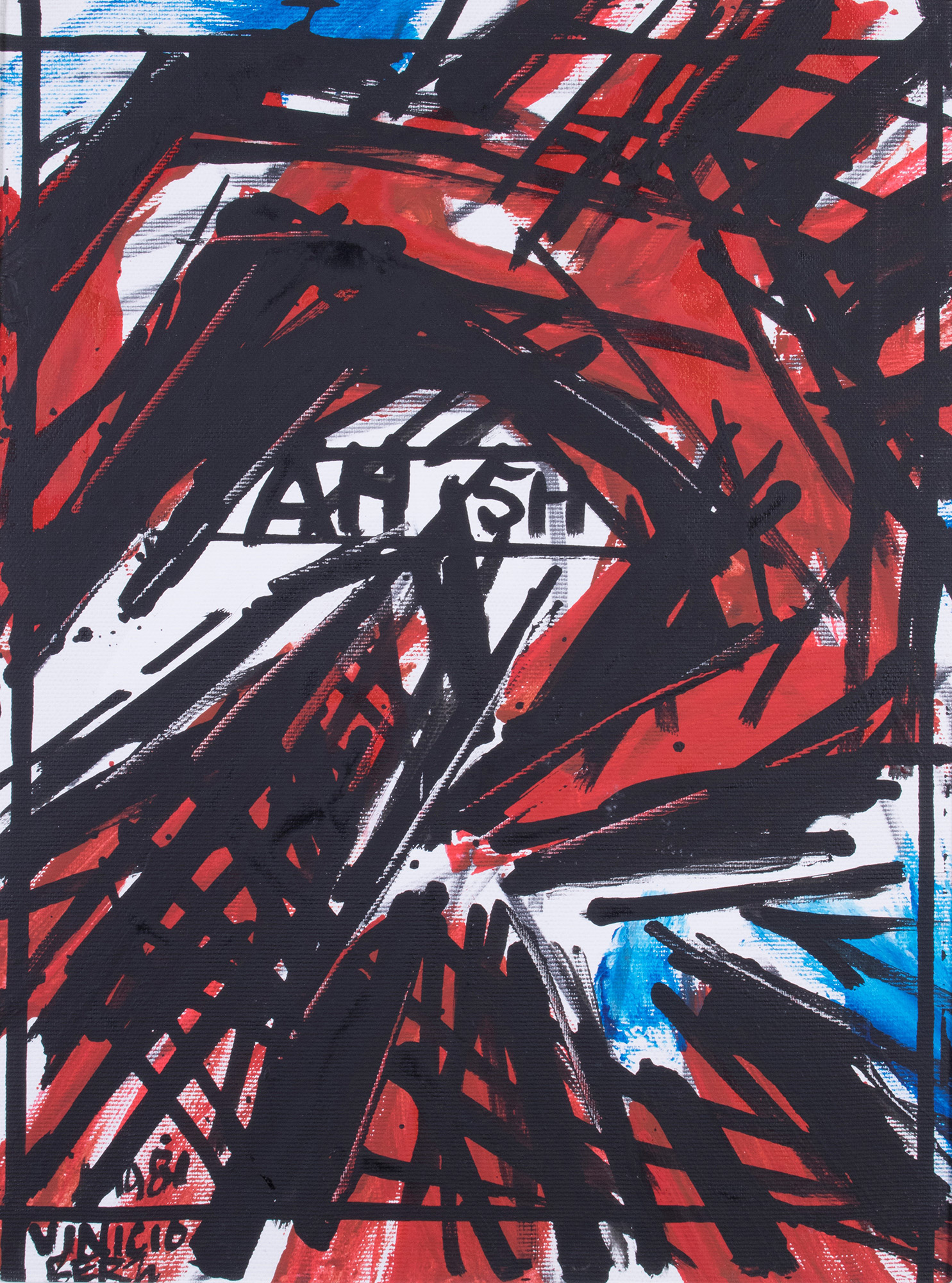 Data e firma in basso a sinistra: 1981 / Vinicio / Berti; firma, titolo e data al verso sulla tela: Vinicio / Berti / "Antagonista / e costruttivo / AH-5H" / 1981.