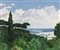 Firma in basso a destra: Sughi; dedica al verso sulla tela: A Luce / quanta luce / marina che illumina / anche dietro le nuvole / Alberto.