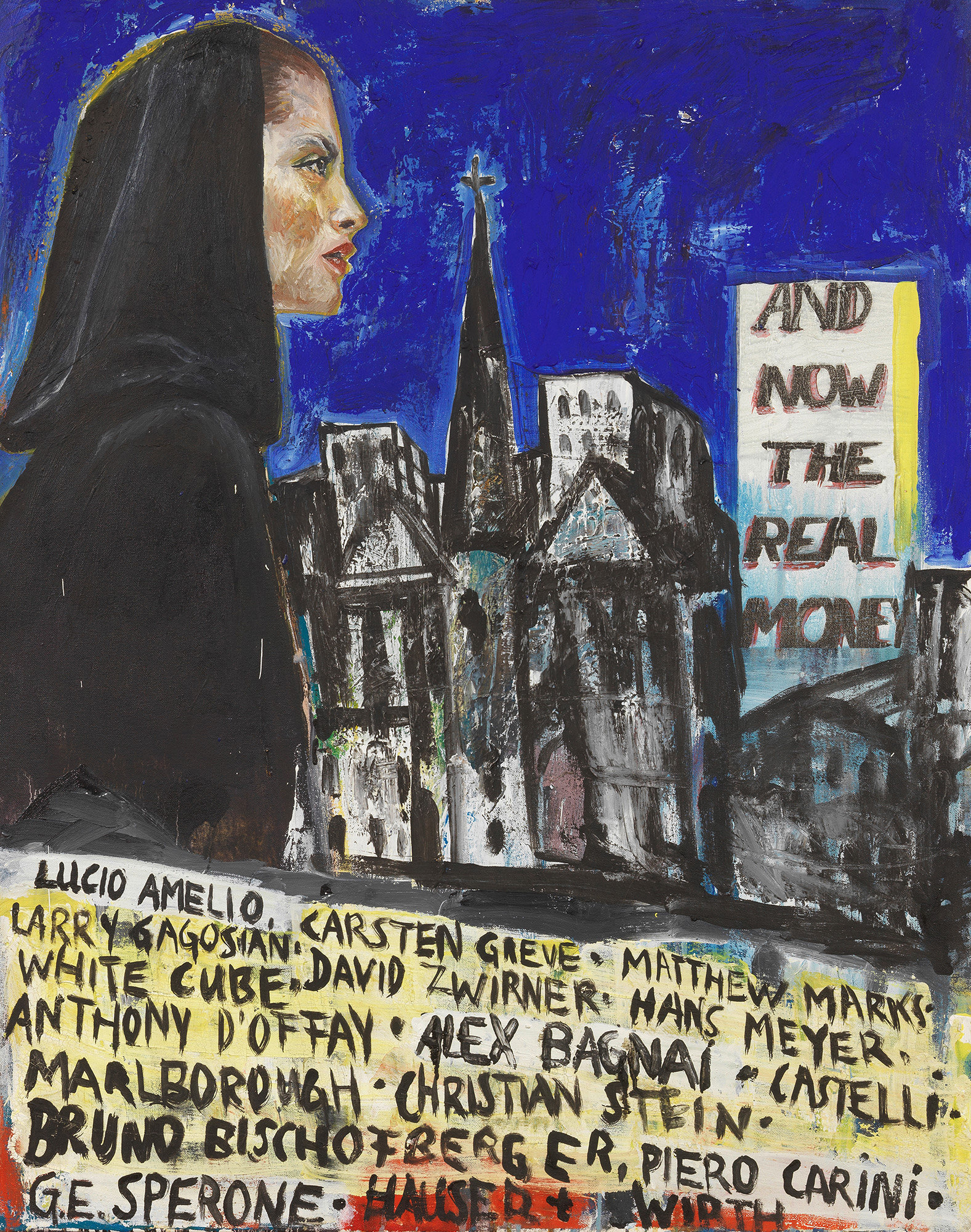 Titolo, firma e data al verso sulla tela: "And / now / the / real / money" / Dormice 2000: numero d'archivio DM 400.