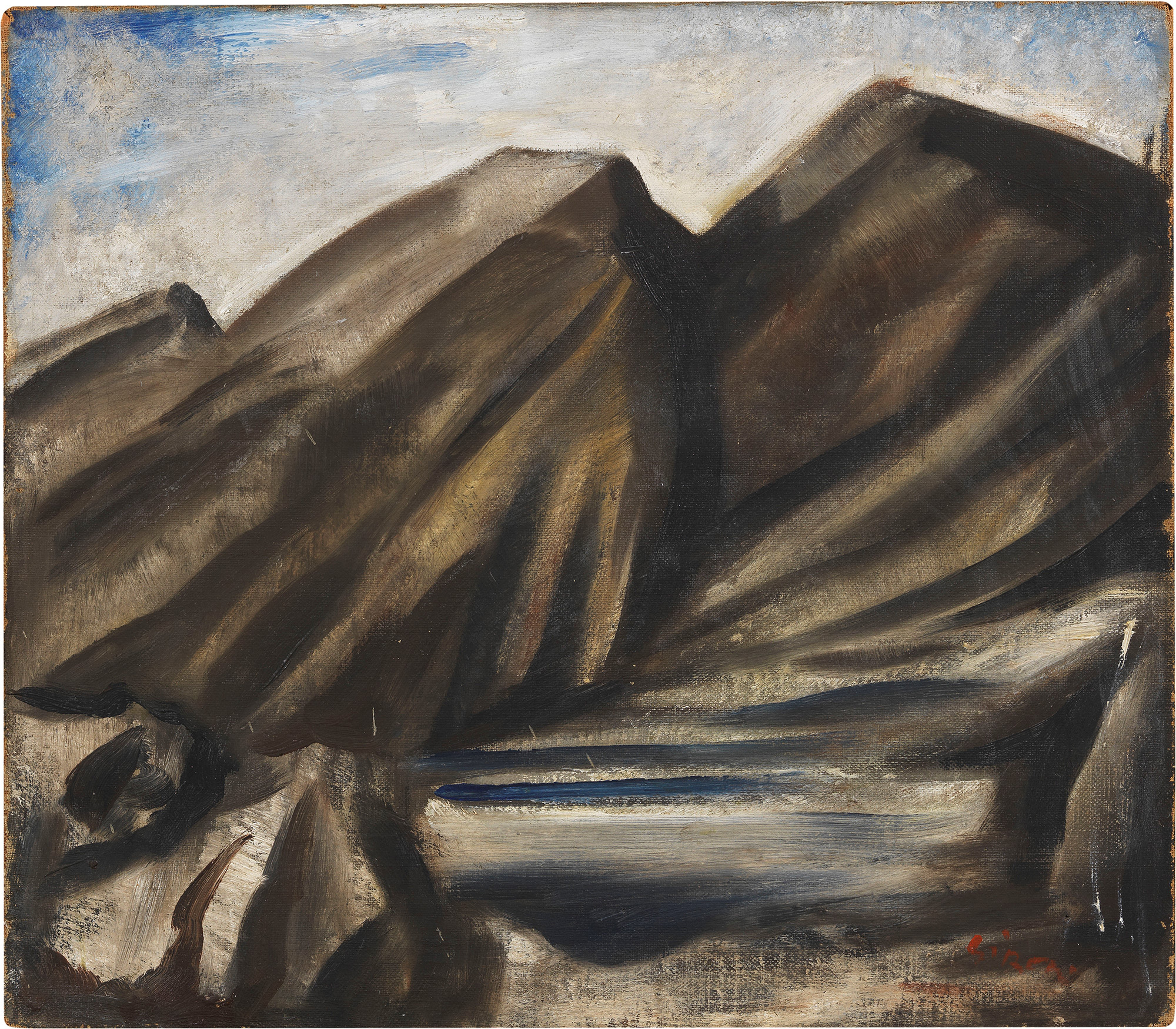Firma in basso a destra: Sironi; dichiarazione di autenticità al verso sulla tela: Questo quadro è opera mia / Mario Sironi / Milano: