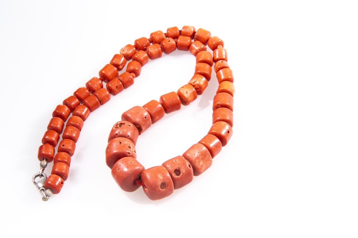 realizzata a un filo con fermezza in argento, collana degradé con cilindri di corallo naturale