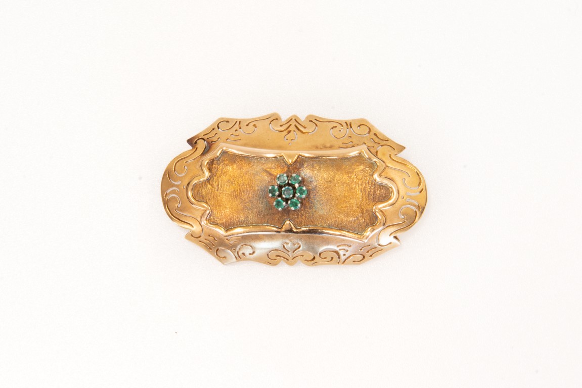 impreziosita da 7 smeraldi taglio tondo di circa 1 ct stimato, marchio 750