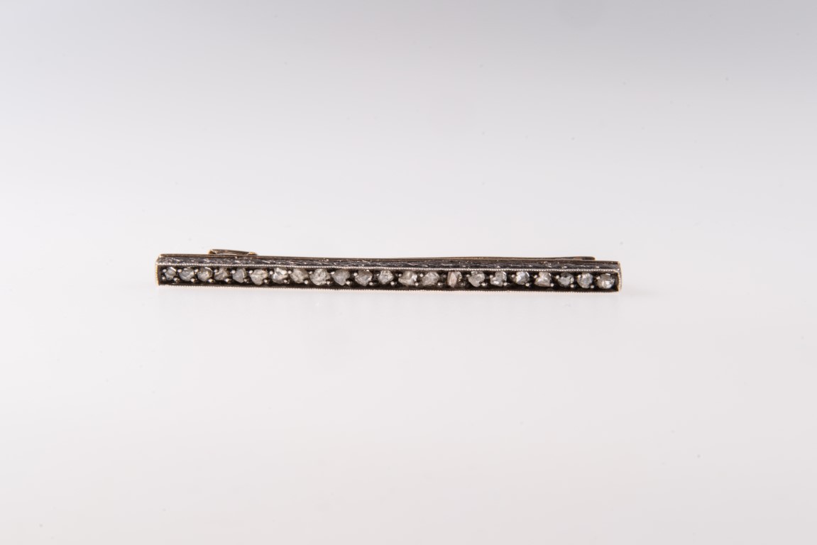 realizzata a barretta e decorata con diamanti taglio rosetta