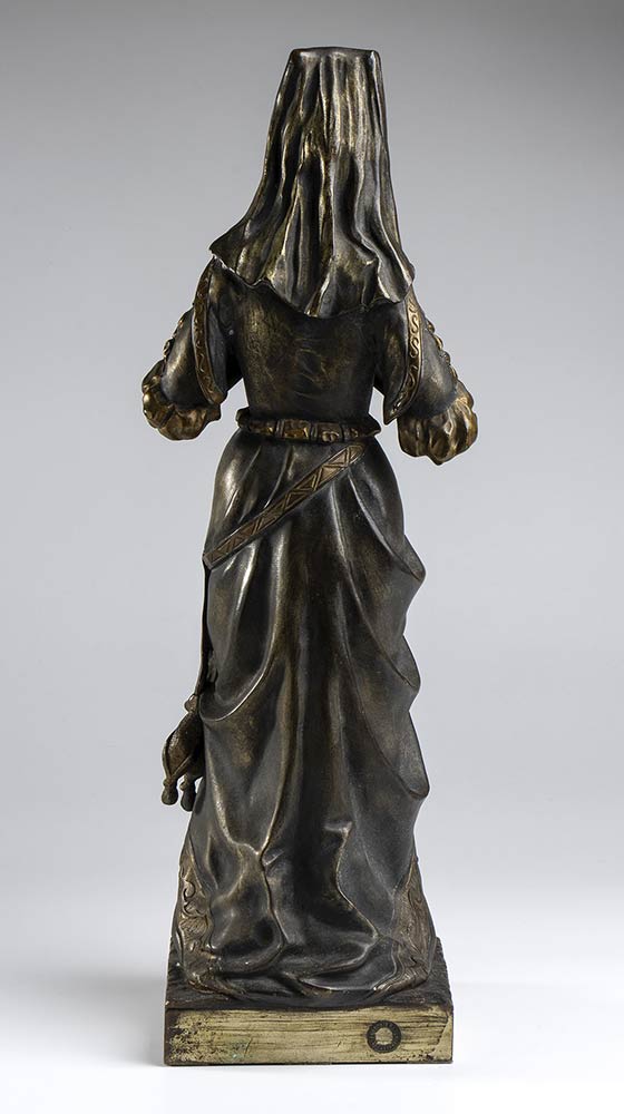Scultura francese in bronzo raffigurante una dama in abiti nobiliari - firmata S. OMERTH
