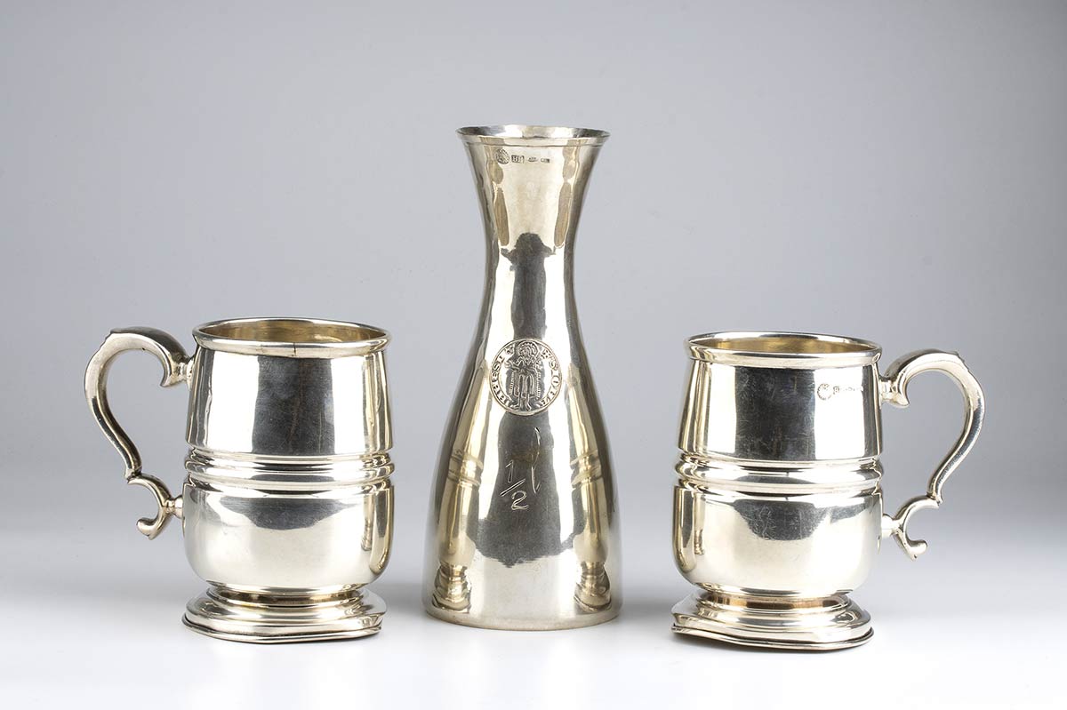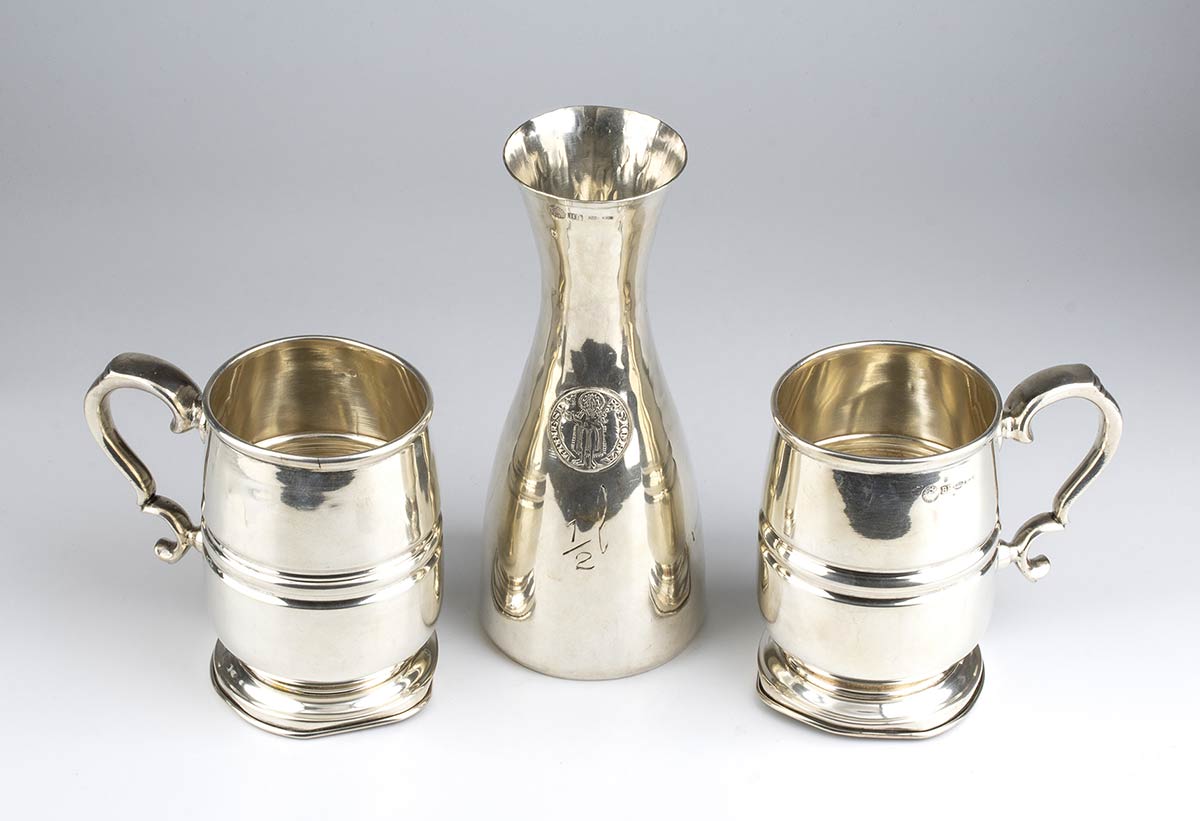 Lotto composto da un decanter da mezzo litro e 2 boccali in argento - Firenze, argentiere BRANDIMARTE