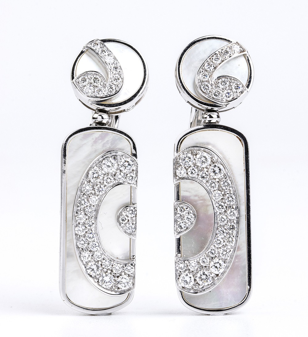 BULGARI: orecchini pendenti in oro, madreperla e diamanti