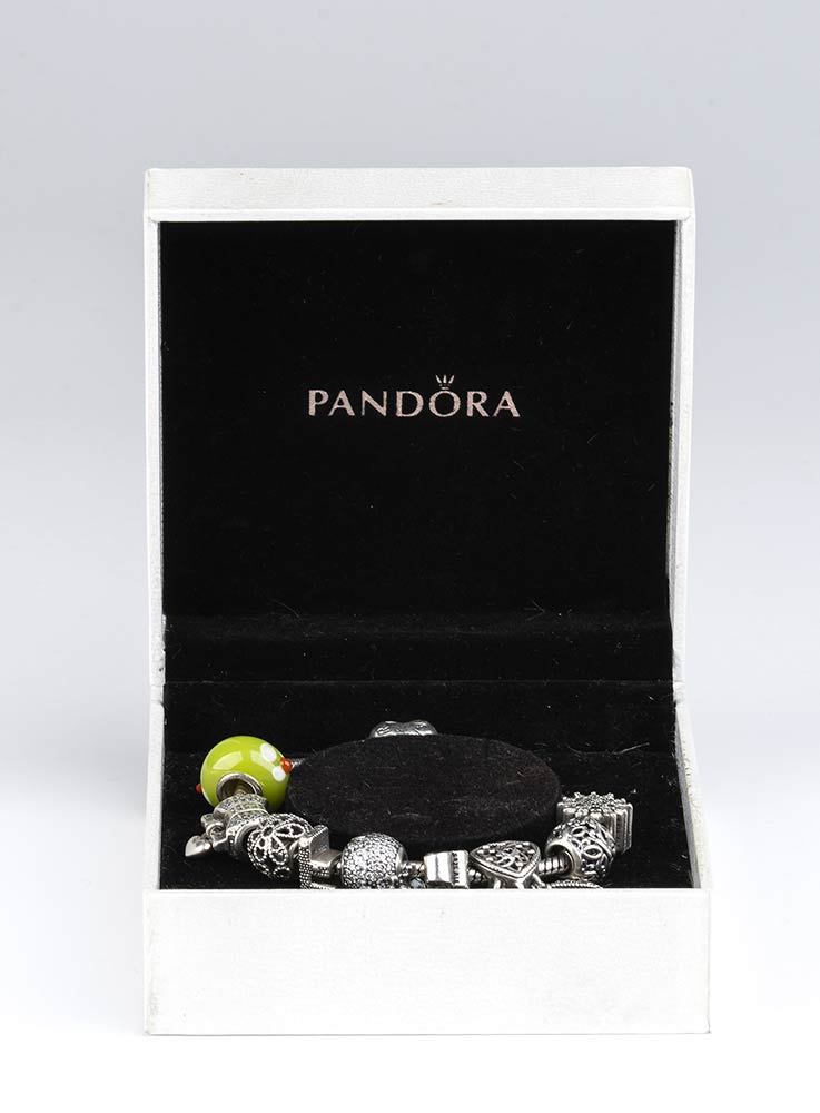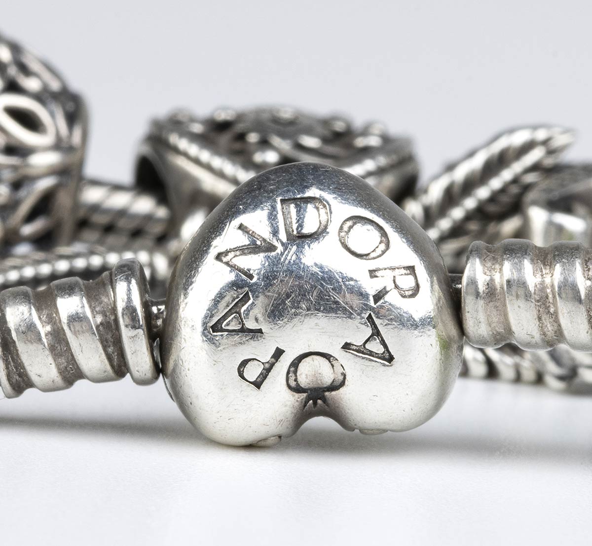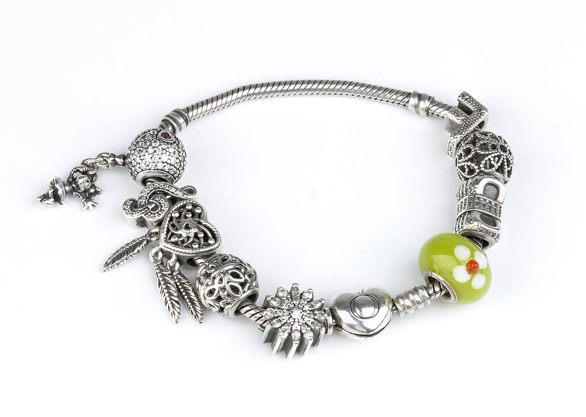 bracciale con 10 charms in argento 925, smalti, paste vitree.
