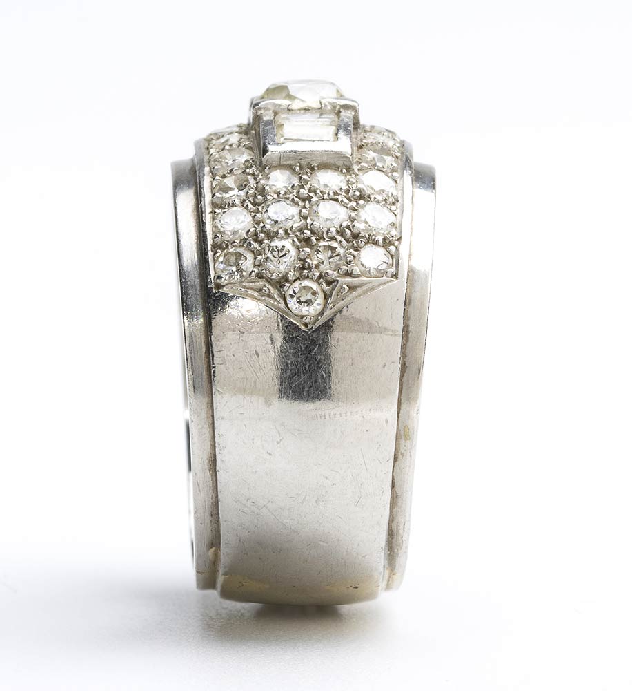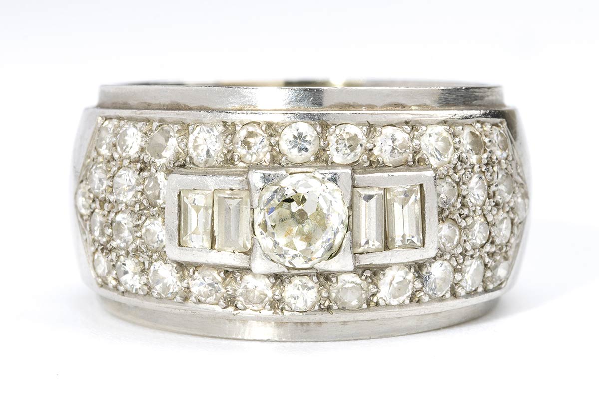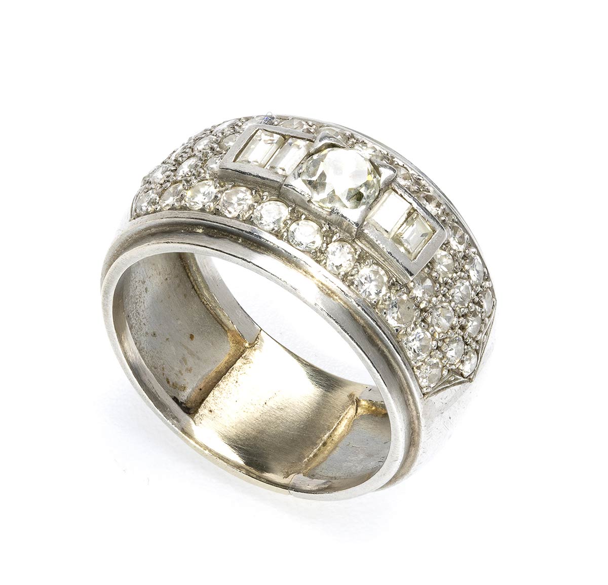 Diamanti di forma rotonda taglio brillante e taglio vecchio europeo, di forma rettangolare taglio a gradini 2,10 ct circa, G-H, VS-SI.