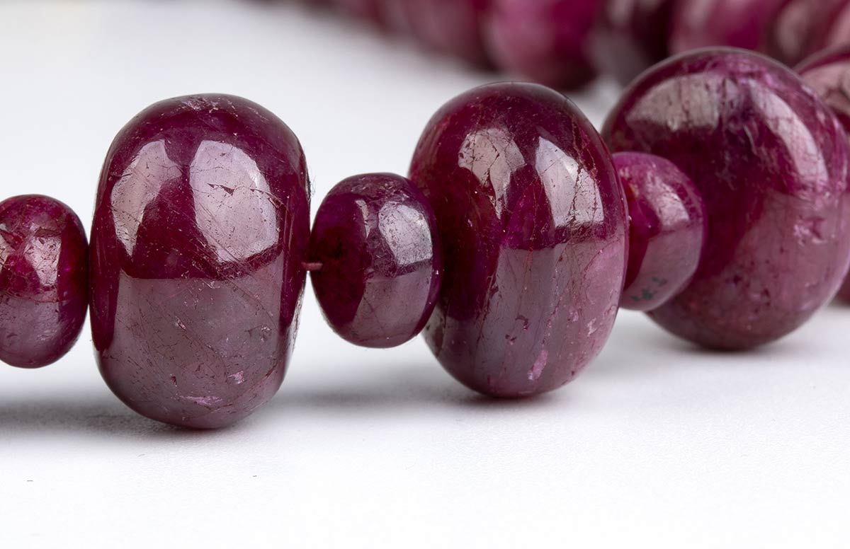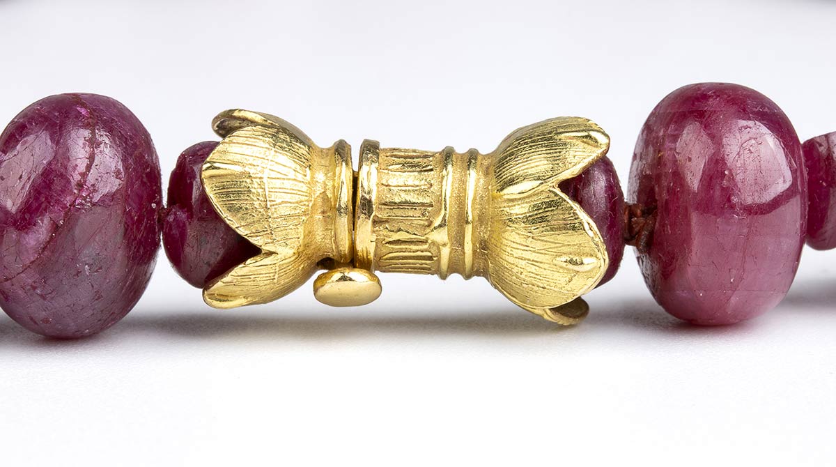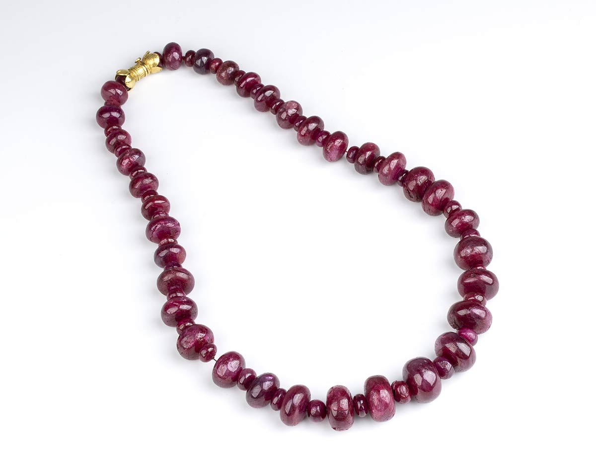 oro giallo 18k, ad un filo di rondelle di rubino disposte in gradazione.