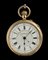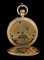 cassa in metallo dorato, quadrante in smalto bianco con numeri romani, cursore laterale per attivare e fermare il movimento. Rimessa dell’ora e carica a chiave.