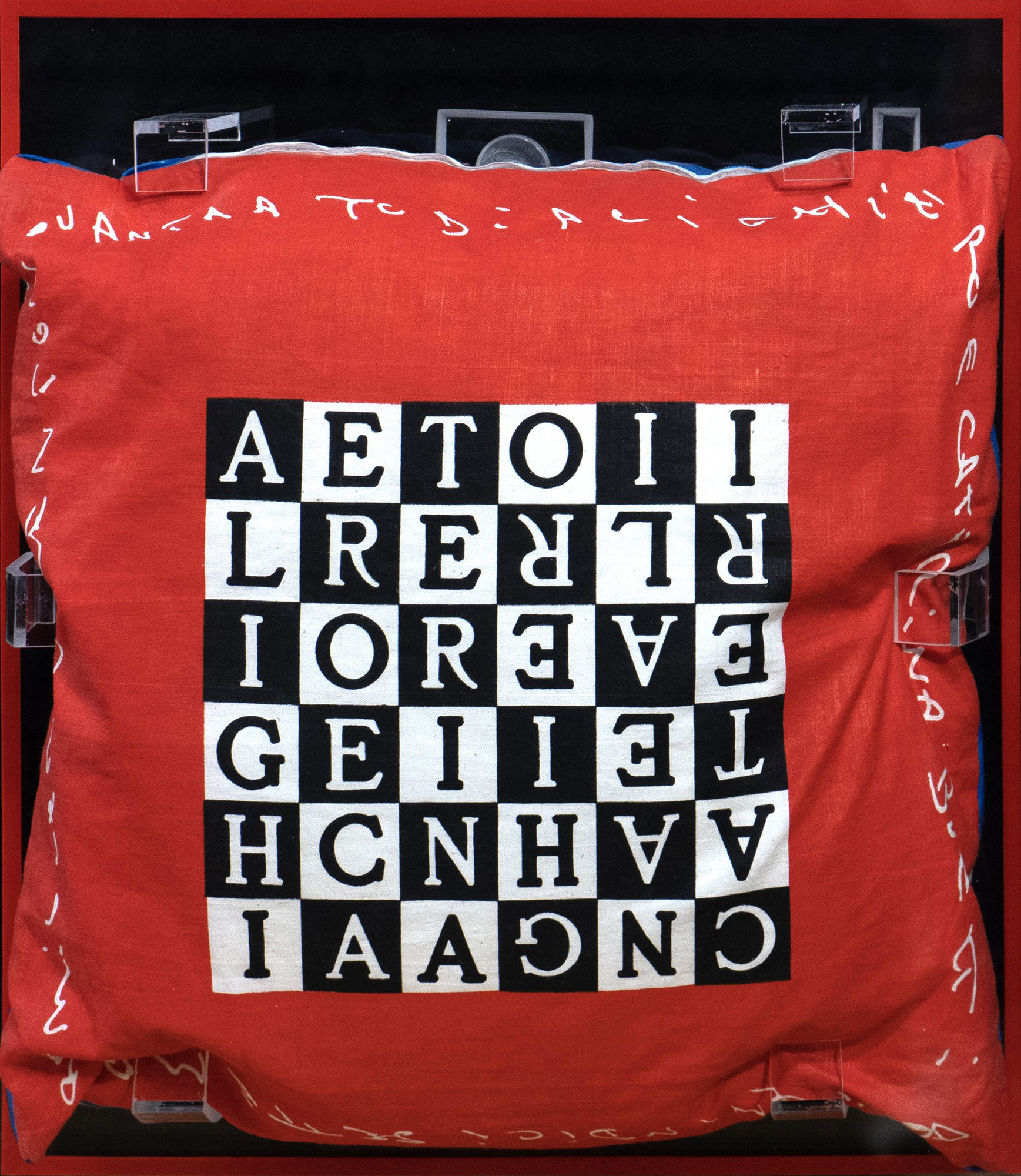 Alighiero Boetti Caterina e Alighiero, 1990 stampa su cuscino cm 55x48 Opera...