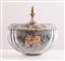 PIETRO MELANDRI (Faenza 1885 - 1976) Bomboniera in ceramica policroma smaltata sui toni del grigio, con decorazioni floreali. 1950 - 1960. Opera firmata sotto la base P. Melandri, reca marchio Mela. Cm 16x17x10,5.