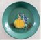 MANIFATTURA ANGELO MINGHETTI, Bologna, 1920 - 1930. Piattino in maiolica turchese decorata con nobiluomo e nobildonna. Opera firmata sotto la base AM, Made in Italy, Carbone. Ø: cm 13,2.