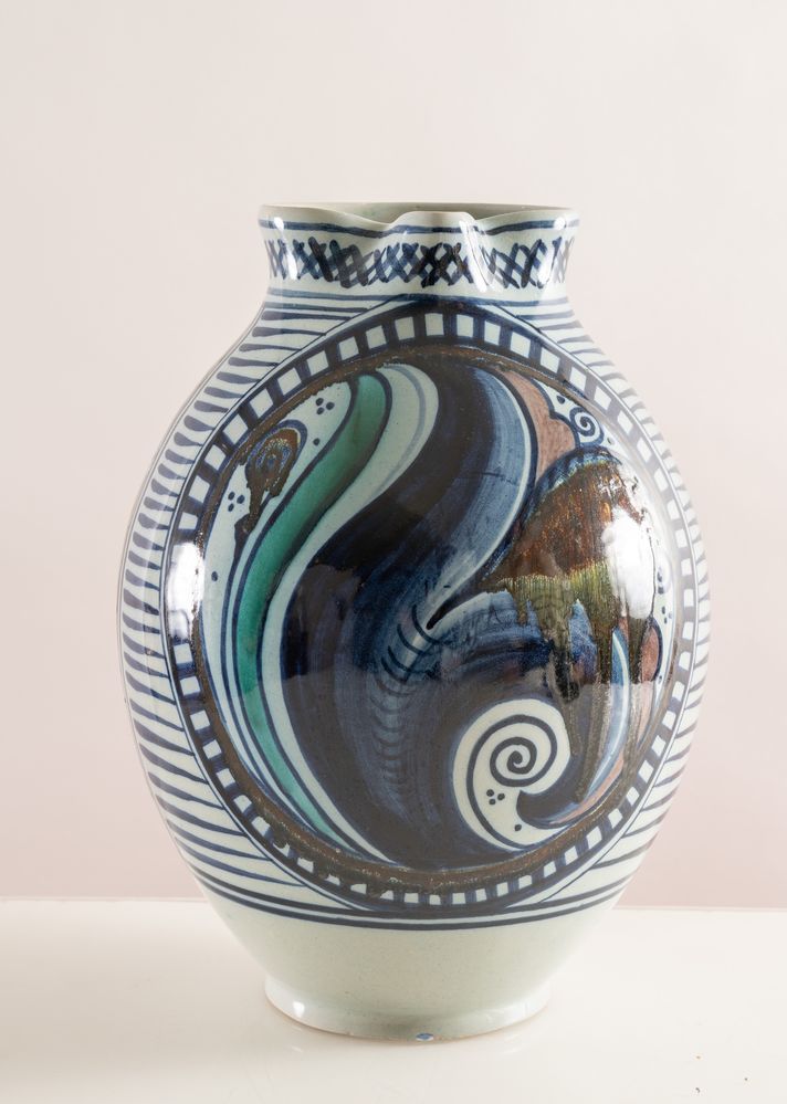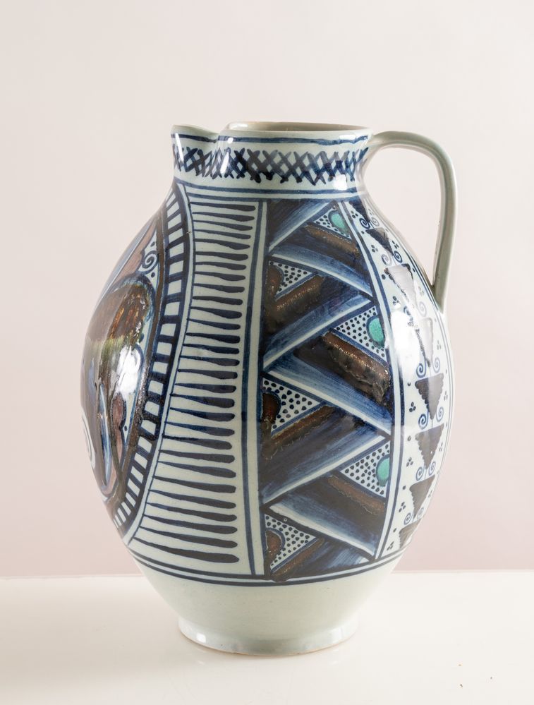 MELANDRI E FOCACCIA (Faenza 1922 - 1931) Grande brocca in ceramica policroma...