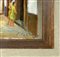 Personaggi in una strada in cornice 37x37 cm Dipinto a olio su lastra d'argento Firmato C. Cappuro.