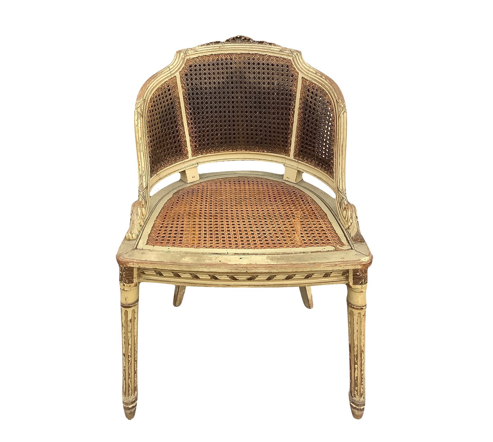 Coppia poltroncine laccate, Nineteen° secolo h cm 84x50x45 Con spalliera e piano in paglia di Vienna
