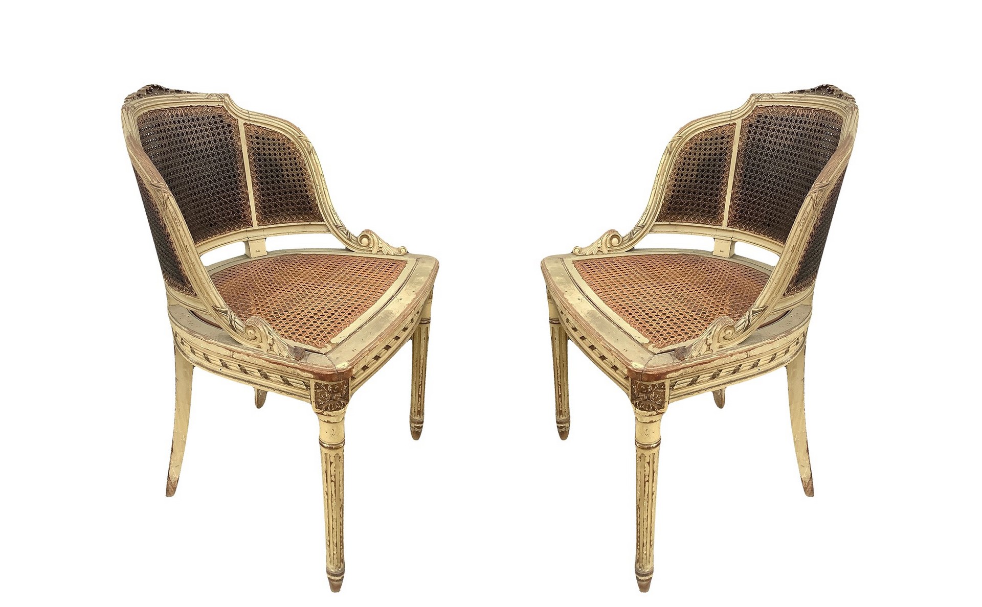 Coppia di poltroncine laccate, Nineteen° secolo H 84 ;Larghezza 50, Profondità 45 Con spalliera e piano in paglia di vienna