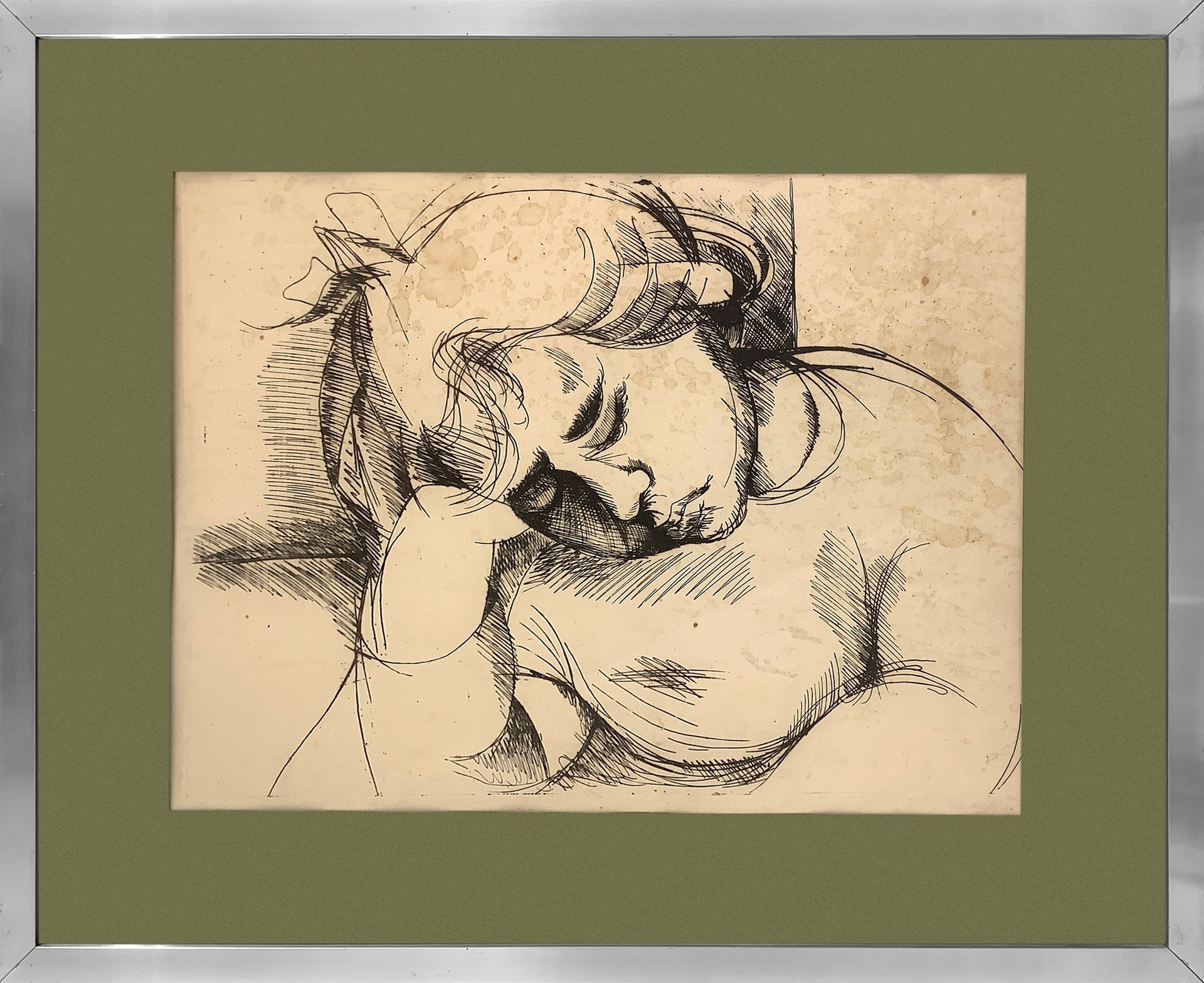 Santo Marino (Militello val di Catania 1924-1991) - Bimba poggiata sul gomito