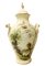 Poutiche in ceramica biansata nei toni del pagliesco con paesaggi di campagna e dettagli in oro, 20° secolo h cm 50x25 porcellana Firma alla base A.Ventura Perugia.