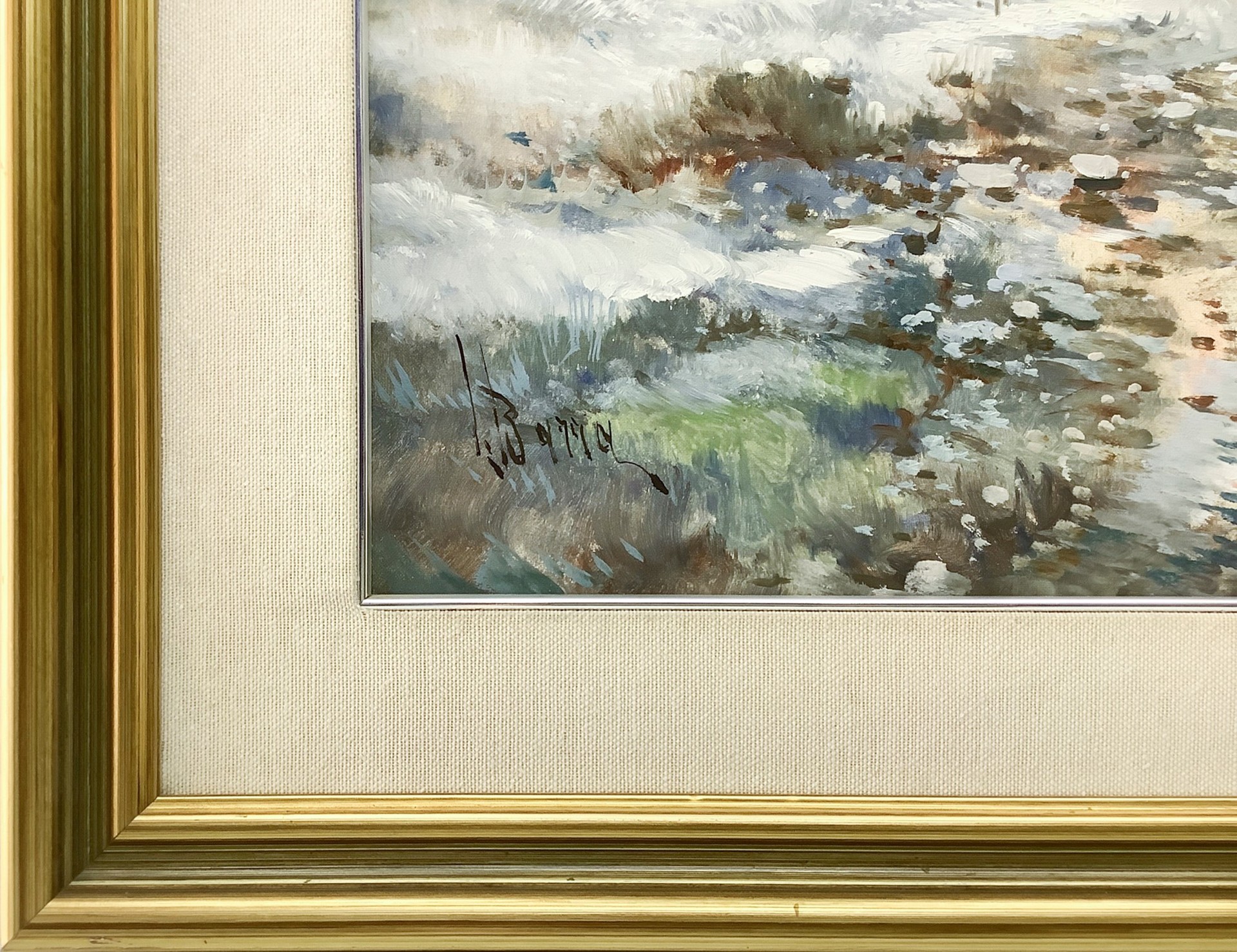 Lelio Barra (Mascalucia) - Paesaggio con case innevate, 20° secolo 40x60 cm, in cornice 55x75 cm Dipinto a olio su tela