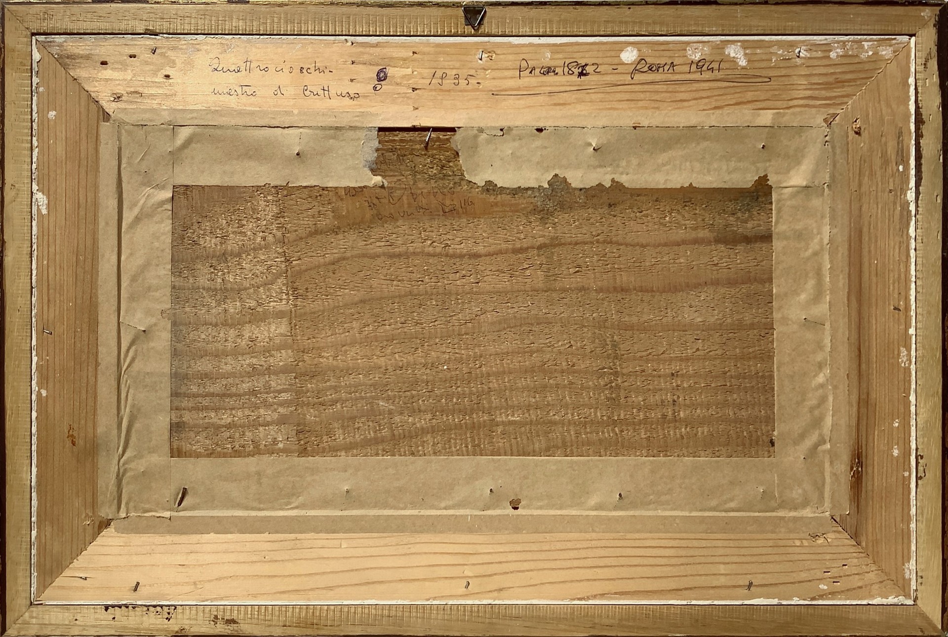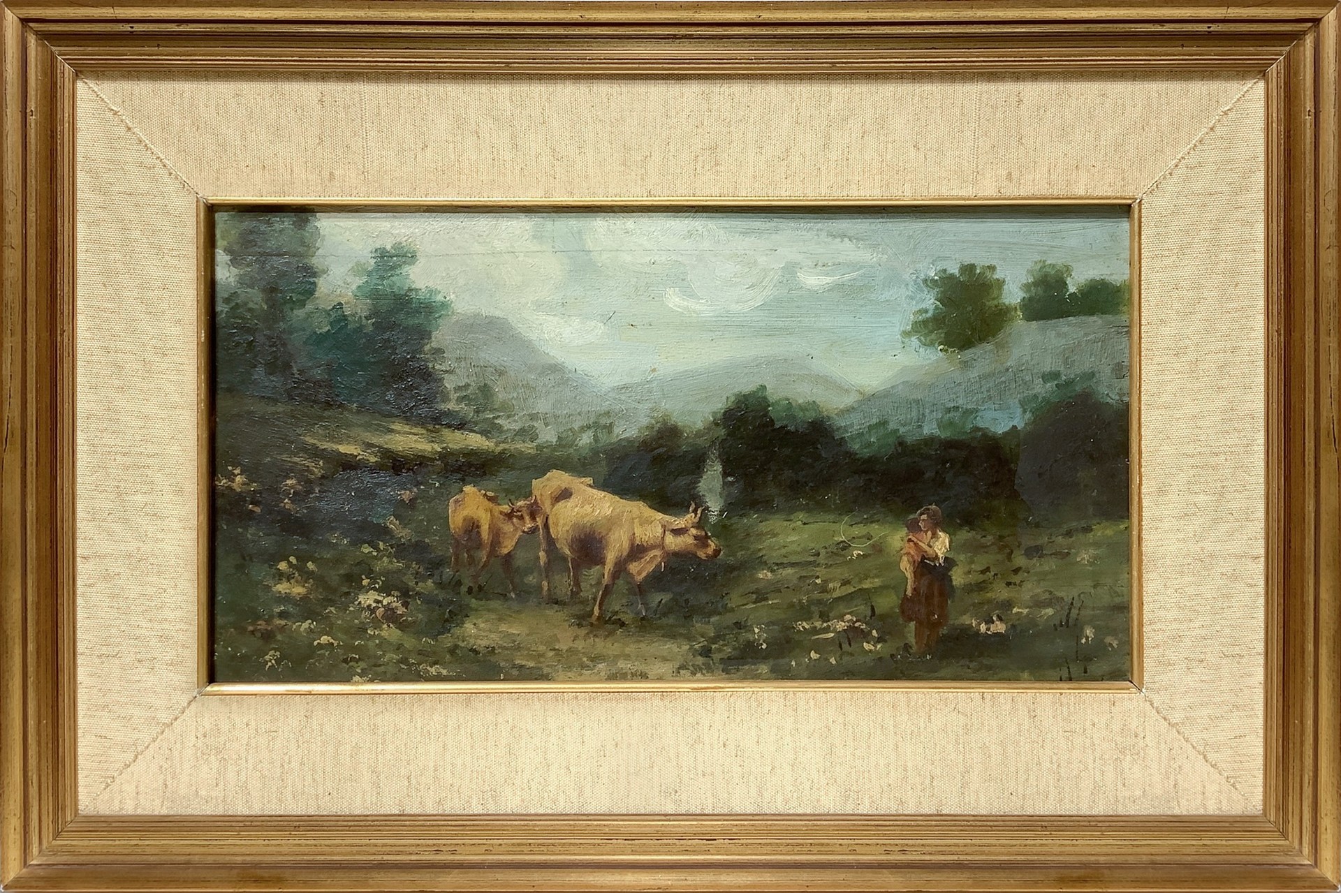 Domenico Quattrociocchi (attribuito_a) (Palermo 1872-Roma 1941) - Scena campestre 20x38 cm, in cornice 34x51 cm Dipinto a olio su tavoletta