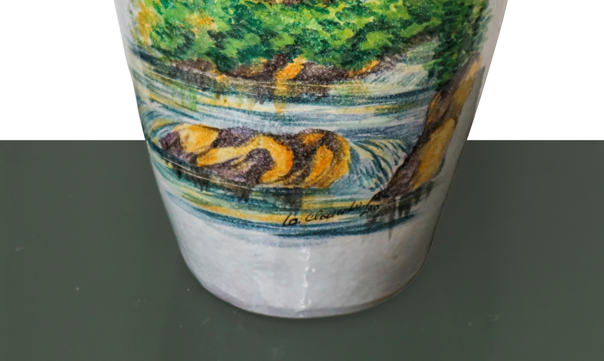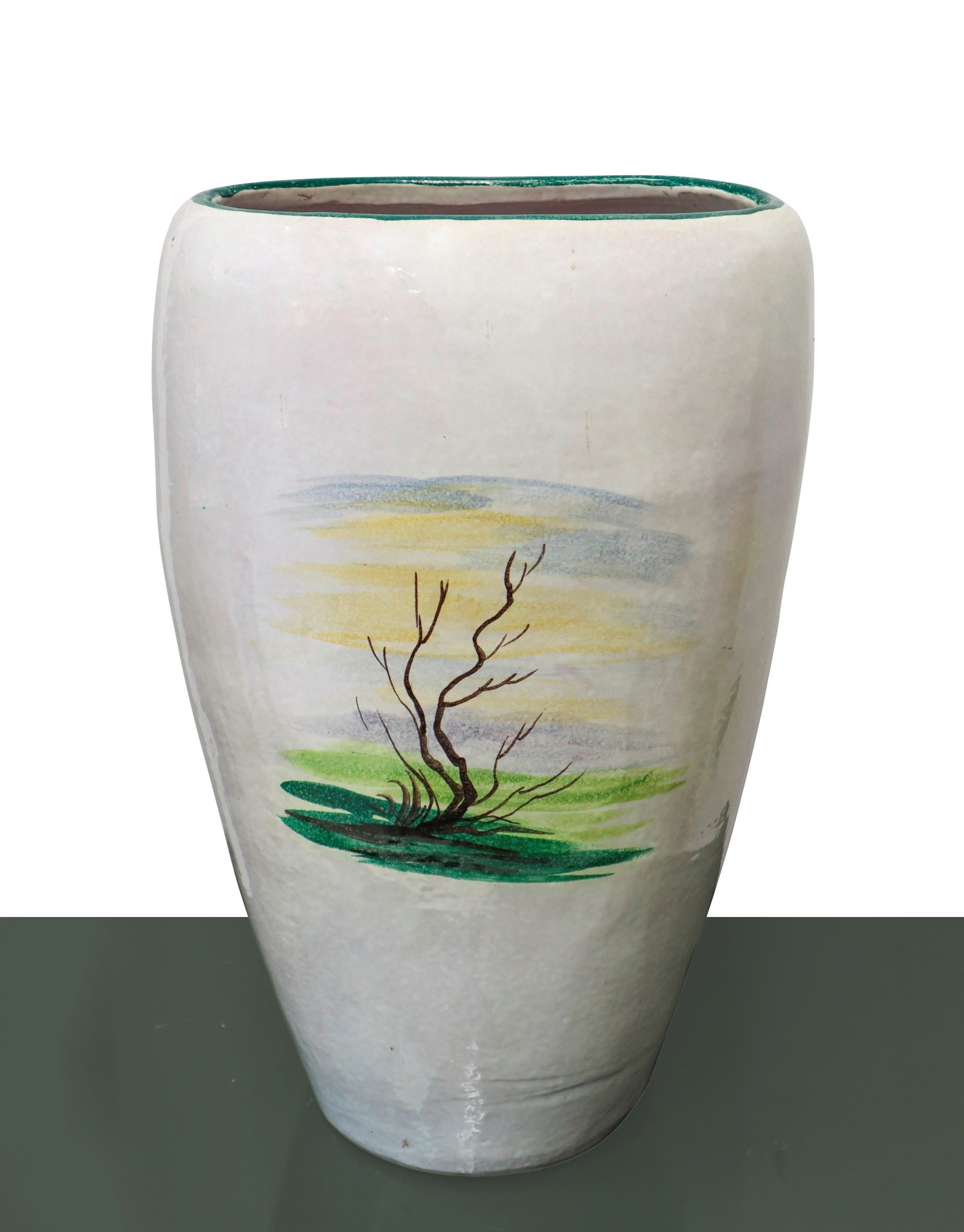 Grande Vaso con decorazione di paesaggio H cm 50, larghezza max 29