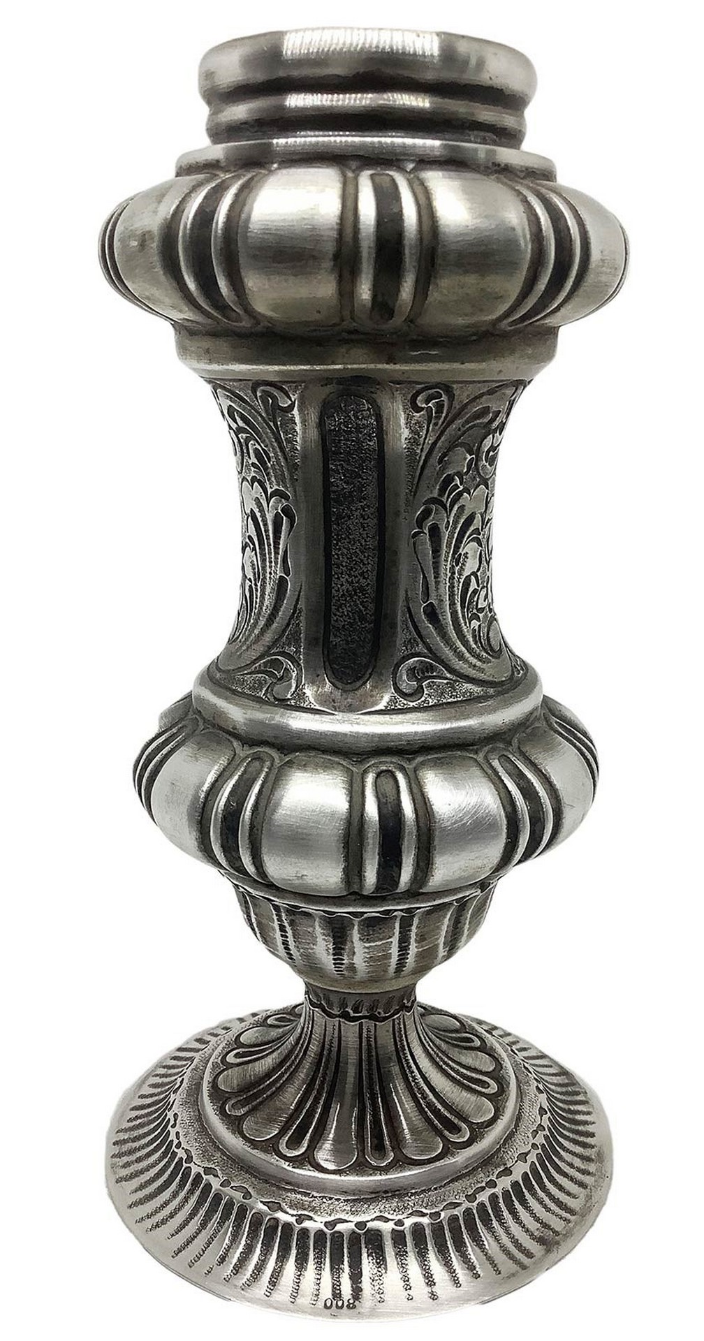 Piccolo vaso in argento, Fine 19° secolo H 16 cm con base, diametro 2,5 cm Punzonato argento 800. Punzonato argento 800.