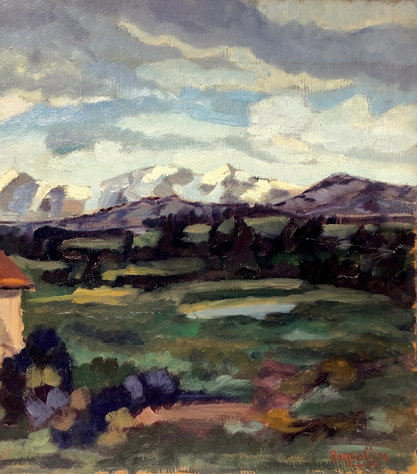 Dopo la pioggia Cm 40x50 Olio su cartone Sul retro è indicato il nome Roncali Pier Francesco, firmato in basso a destra Roncali 74.