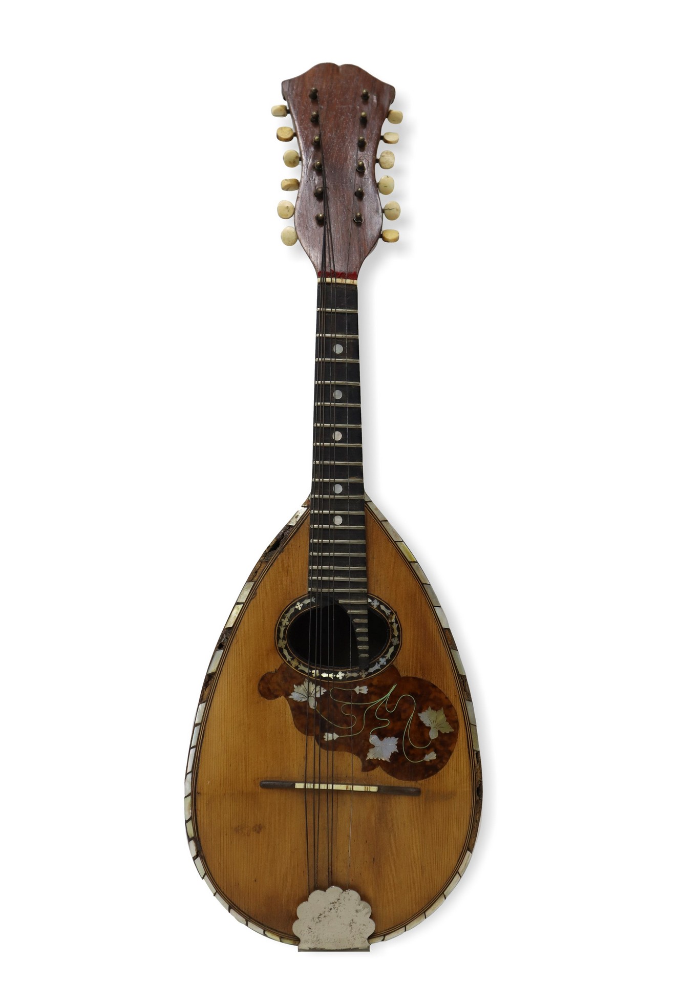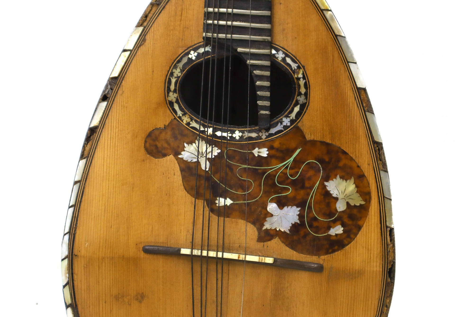 Mandolino, Primi 20° secolo cm 63,8 Marcelli Made in Germany. Etichetta Giuseppe Gargano Catania Via Nola 121. Presenti mancanze nei decori in madre perla.Marcelli Made in Germany. Etichetta Giuseppe Gargano Catania Via Nola 121. Presenti mancanze nei decori in madre perla.