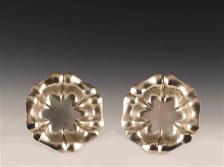 Coppia di cestini in argento con profilo smerlato, gr. 307, d. cm. 20.