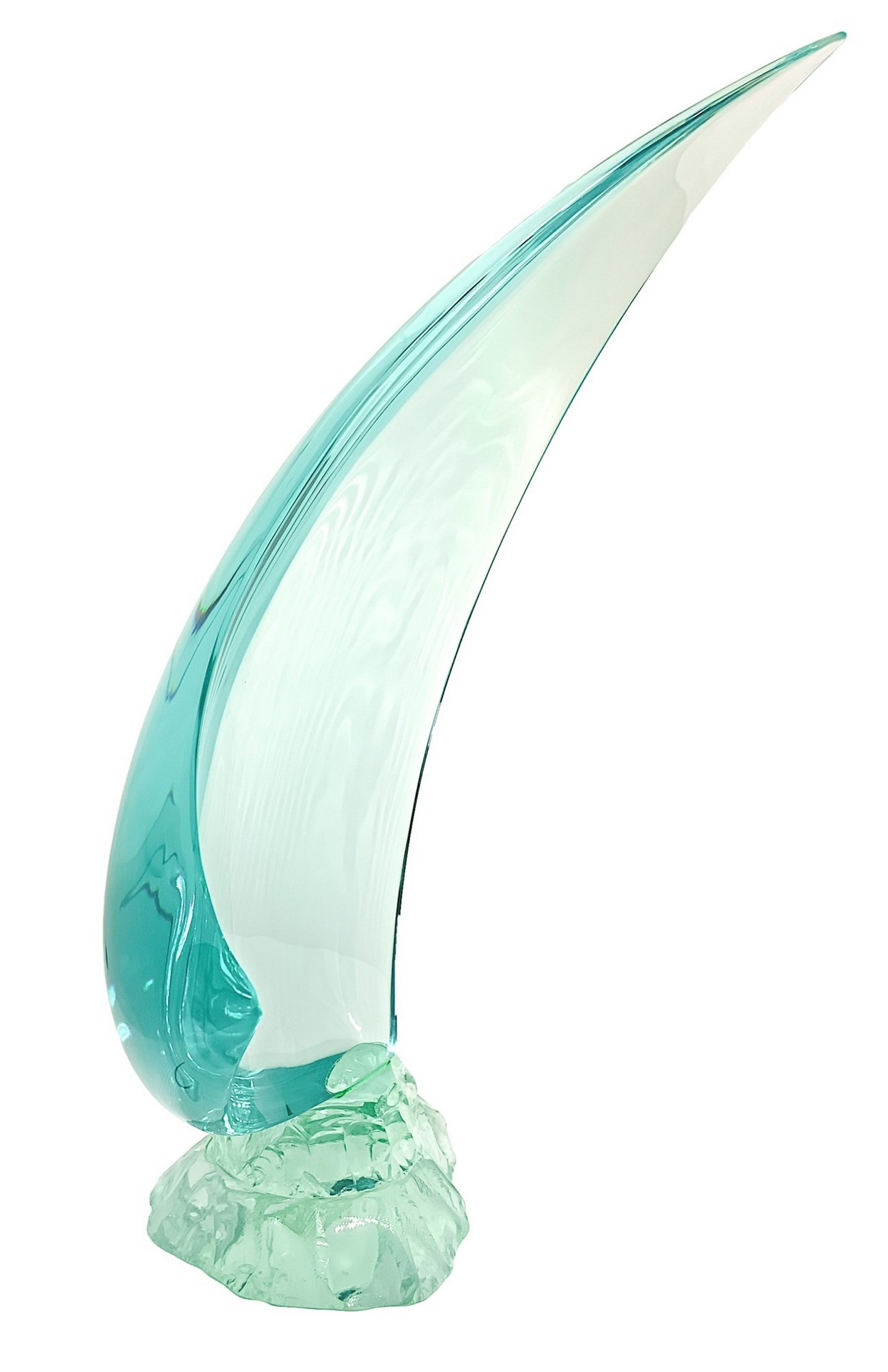 Piccolo centrotavola in vetro di Murano con striature nei toni del blu, Ioan Tamaian, 20° secolo.