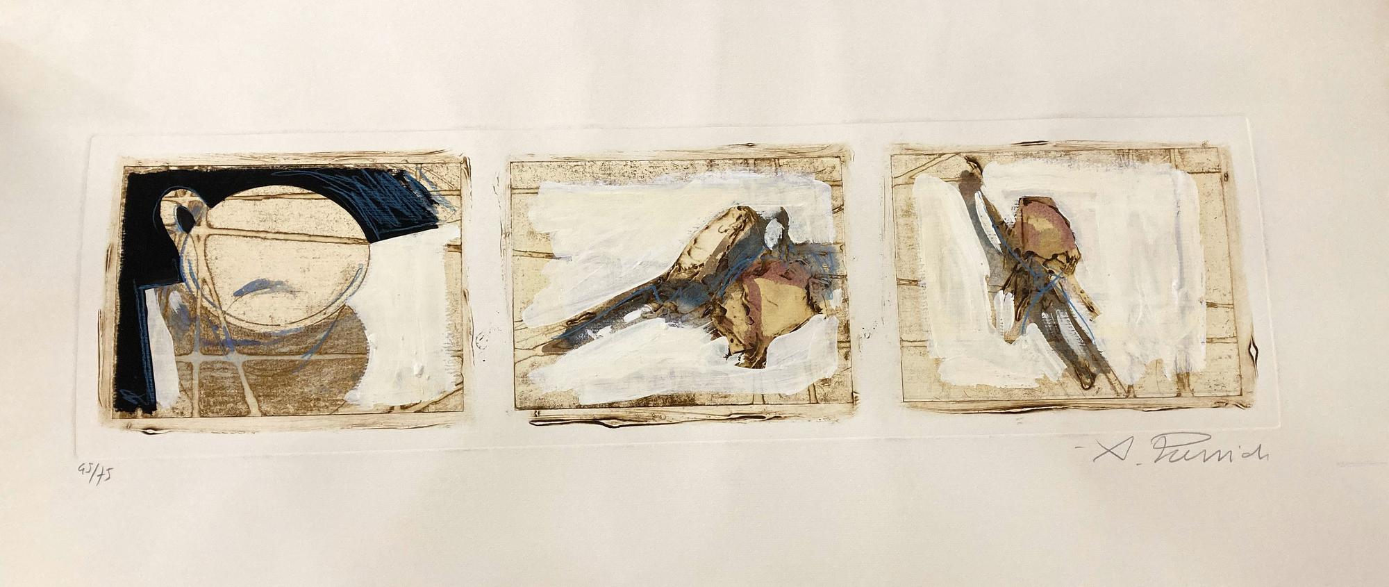 Alessandro Reggioli TRITTICO COMPOSIZIONE acquaforte con interventi in...