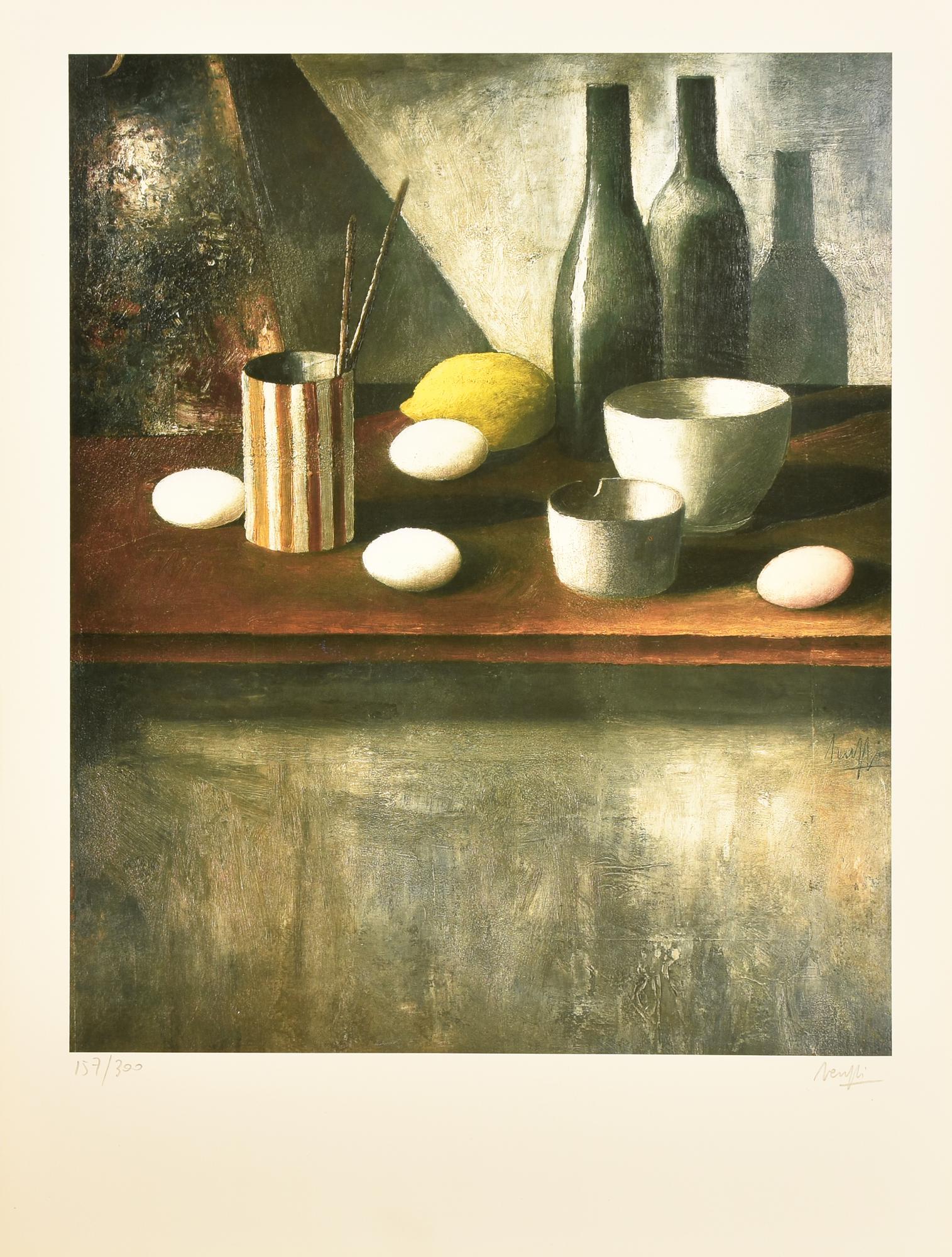 Marcello Scuffi NATURA MORTA CON LIMONE E UOVA litografia su carta, cm...