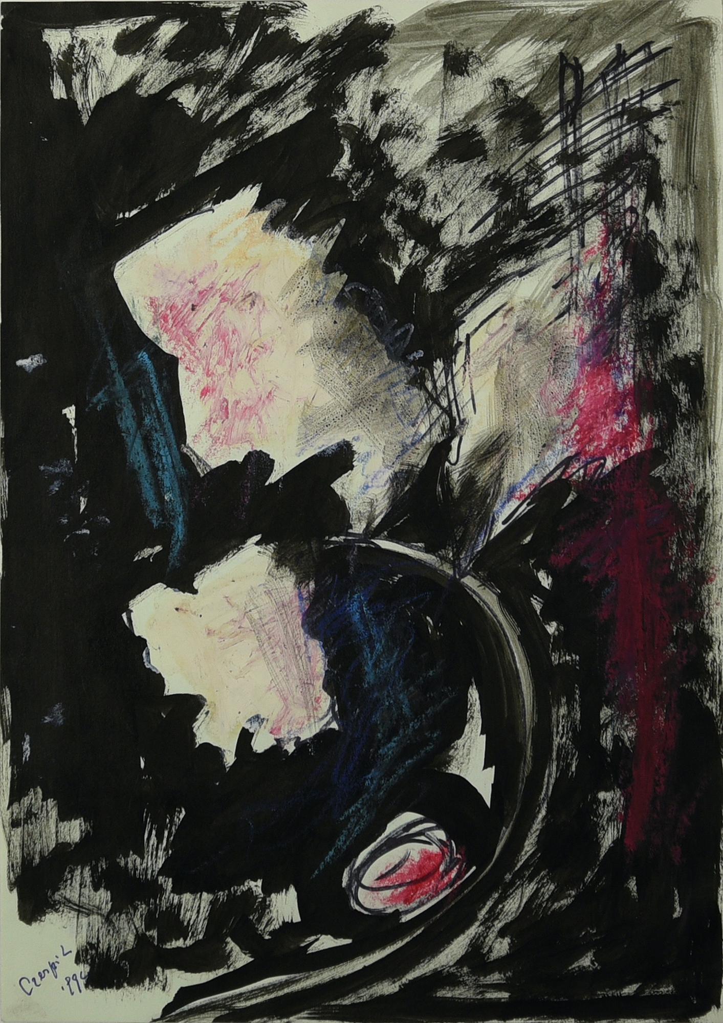 Gaetano Crespi SENZA TITOLO, 1994 tecnica mista su carta, cm 29,5x21 firma e...