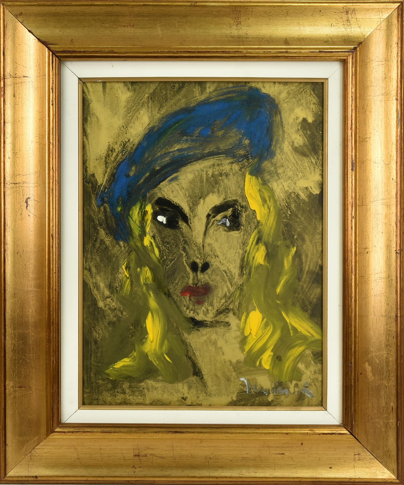Harry Jelinek DONNA CON BASCO tecnica mista su faesite, cm 47x34 firma