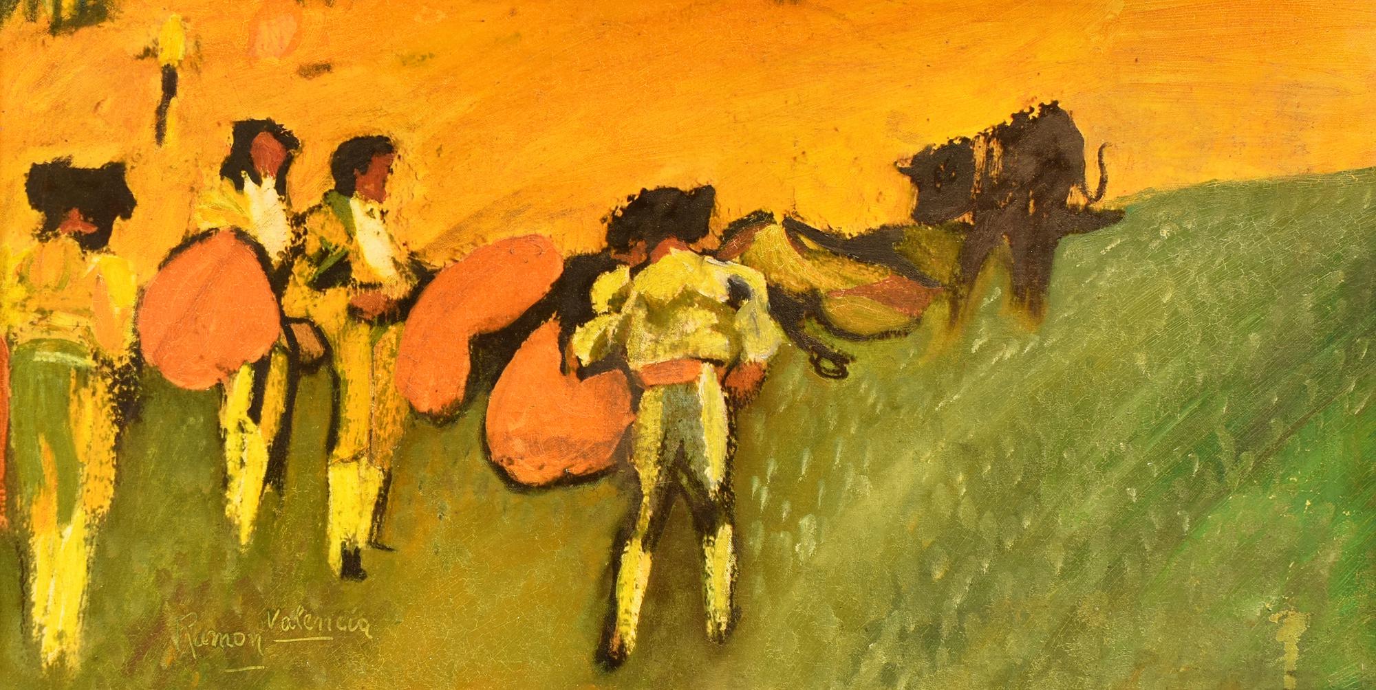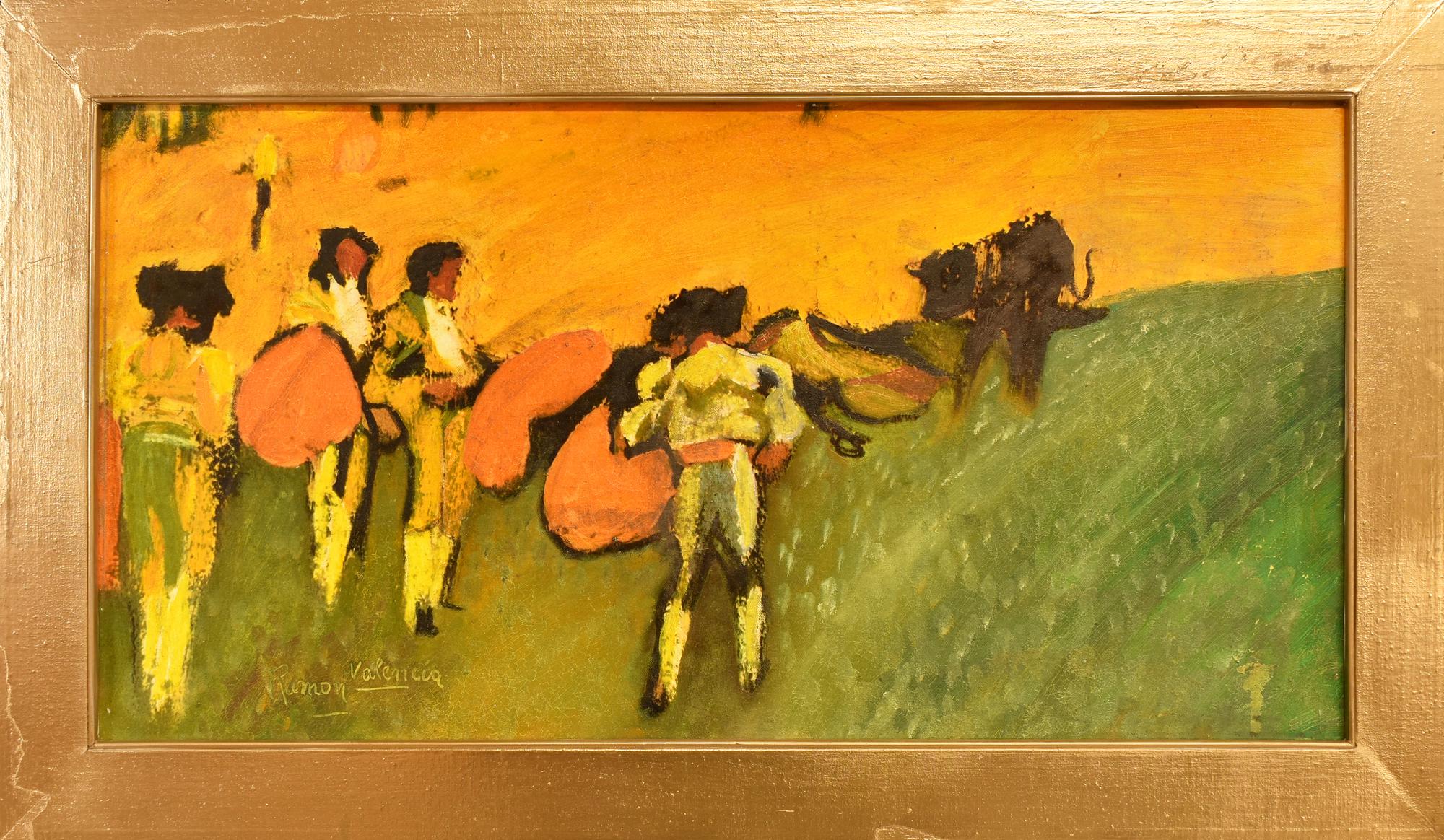 Valencia Ramon CORRIDA tecnica mista su cartone, cm 40x80 firma Lievi difetti