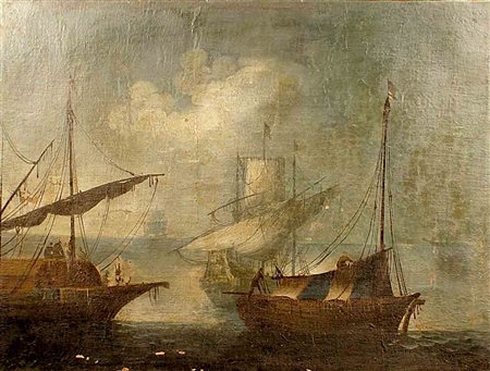 Scuola veneta del XVIII secolo, "Barche", olio su tela, cm. 74x98 (difetti).