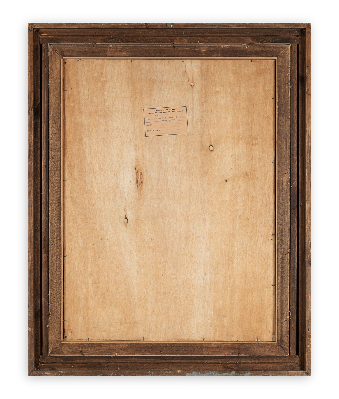 Etichetta dell'Artista con caratteristiche tecniche dell'opera al retro