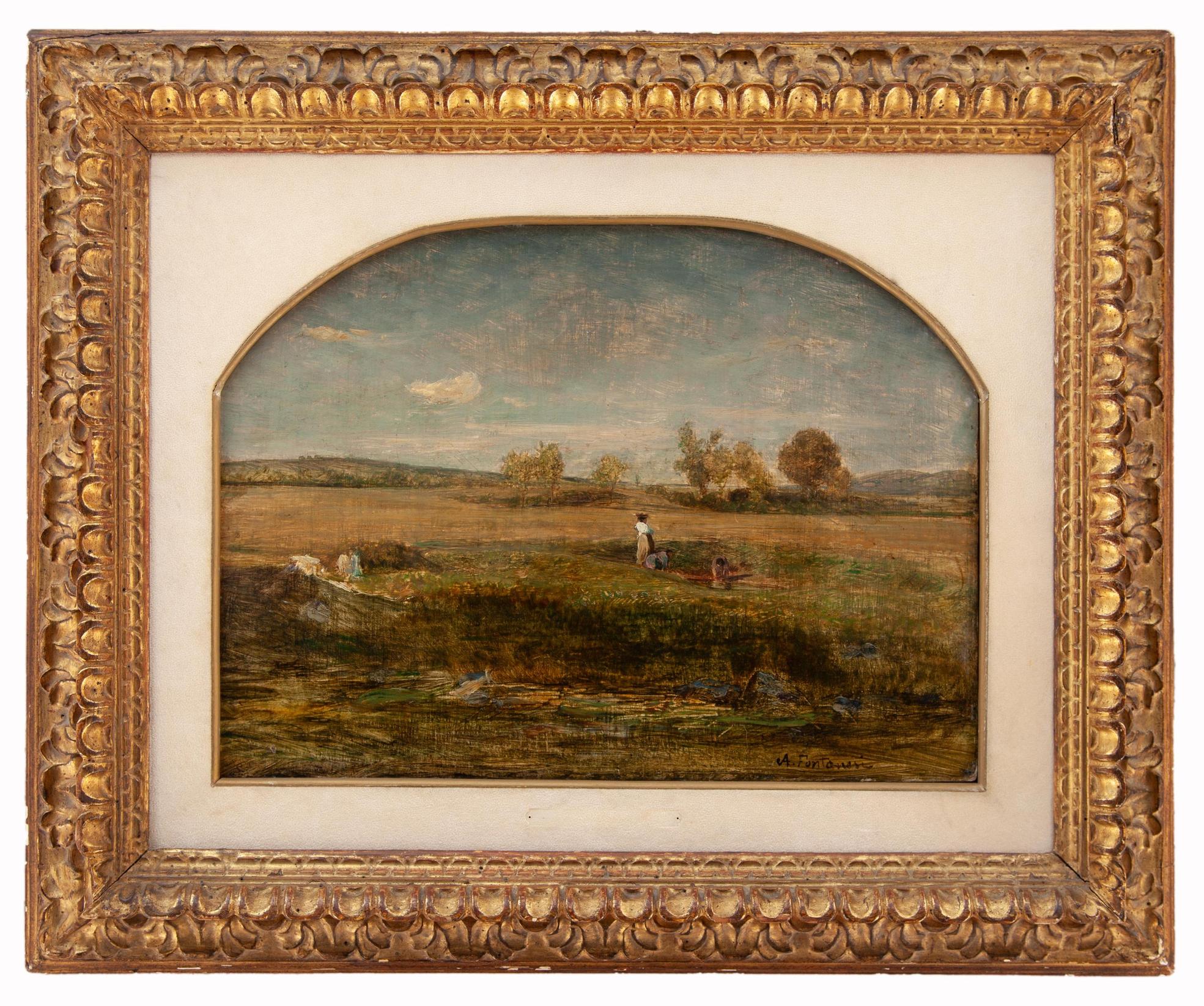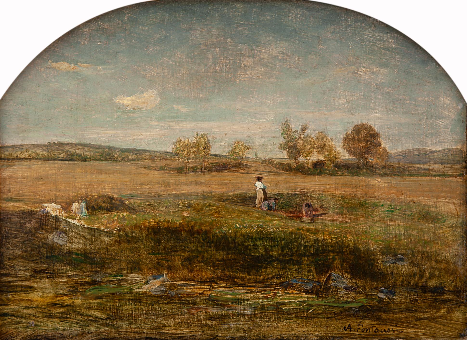 Antonio Fontanesi Reggio nell'Emilia 1818 - Torino 1882 Paesaggio a Creys Olio su tavola cm 27x37