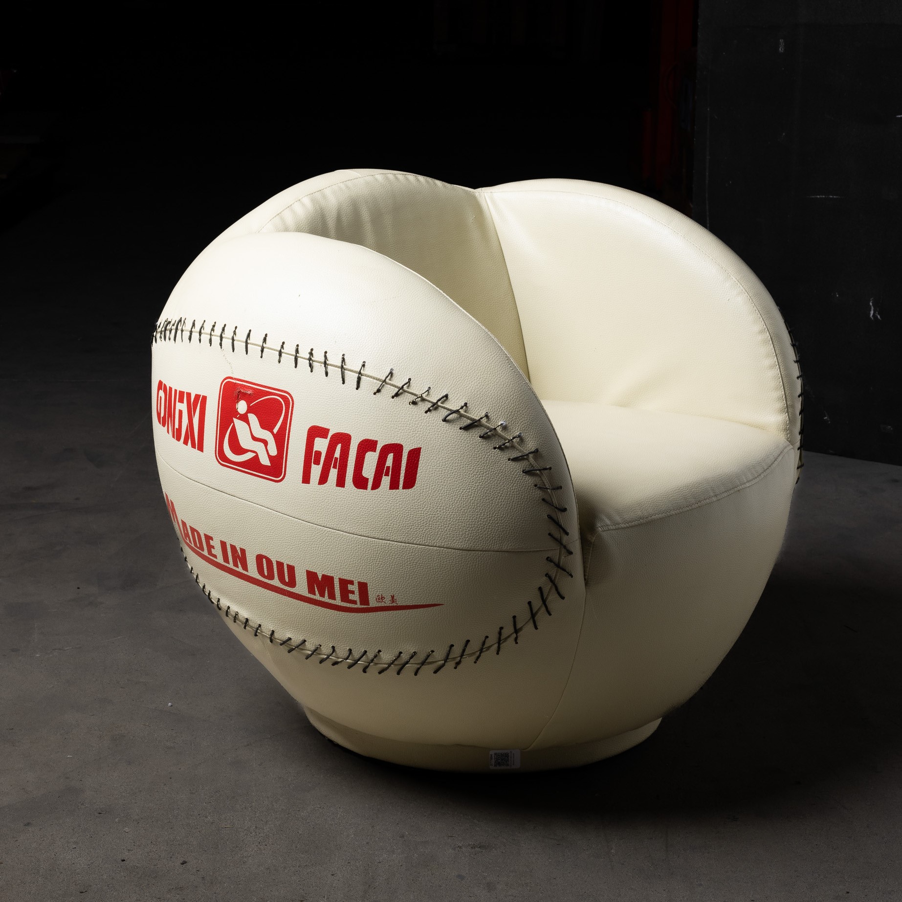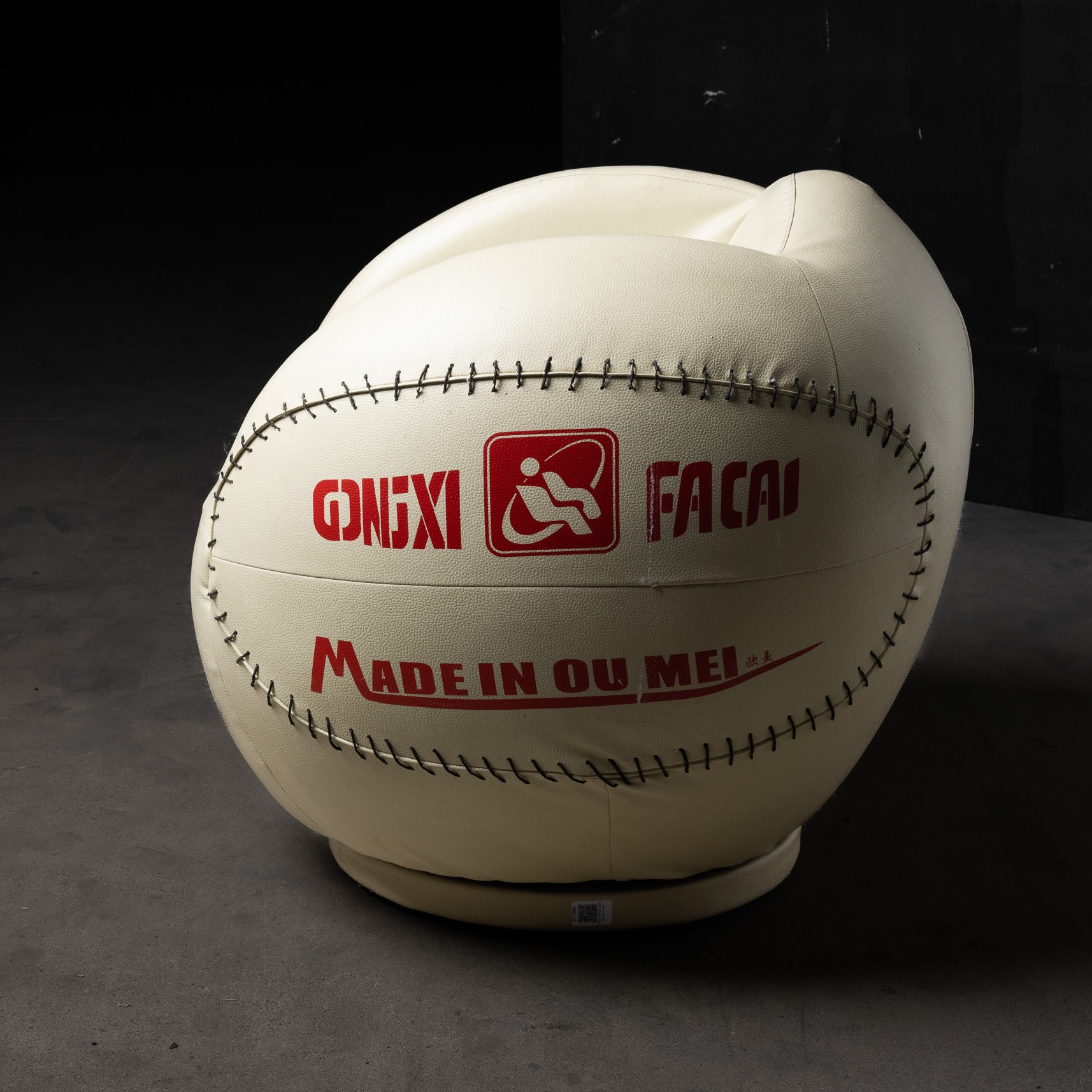 Poltrona iperrealista in skai con base girevole e sfoderabile.Produzione 1990 ca. Cm 98 x 78 x 70.