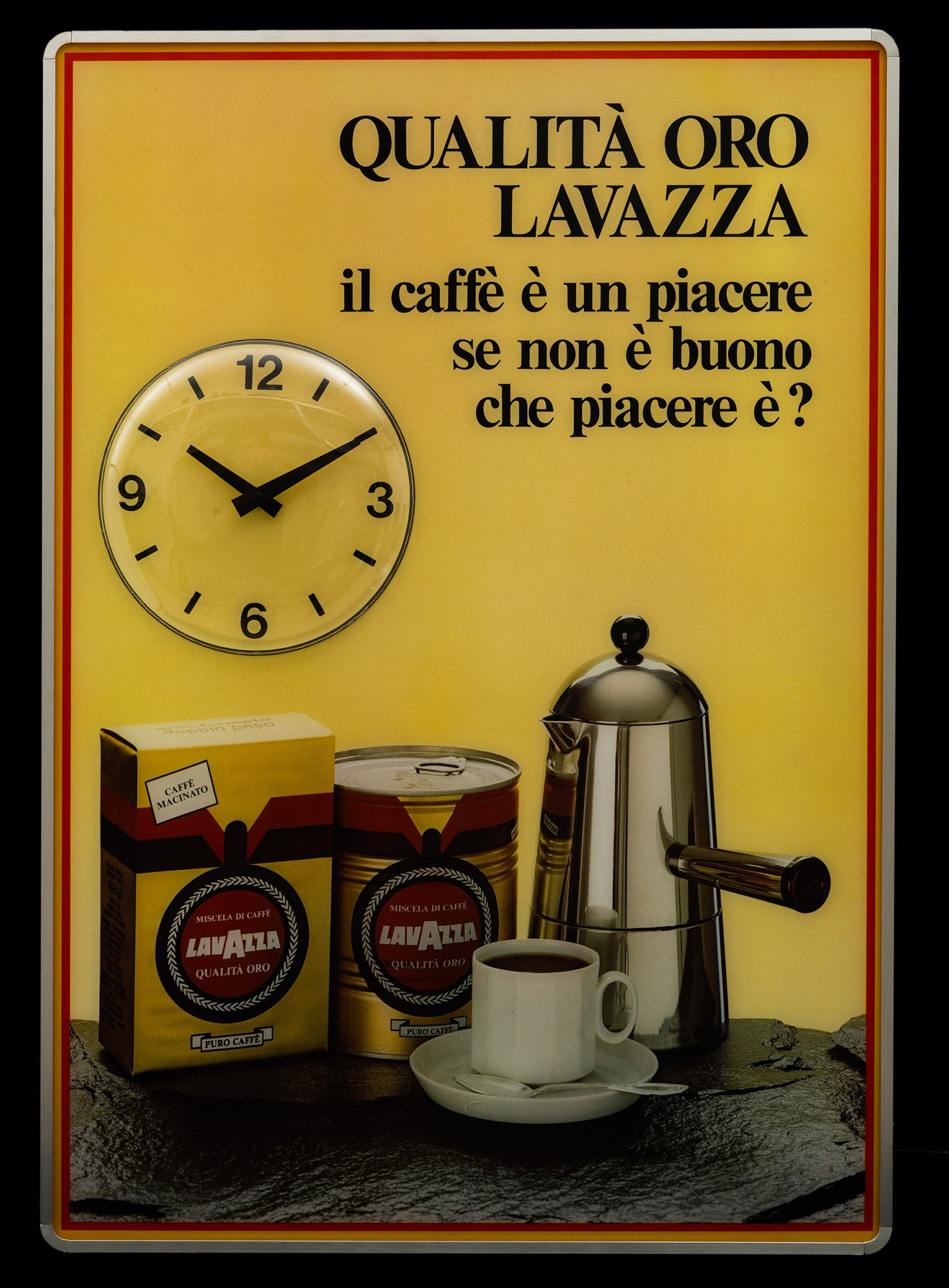 Insegna luminosa con orologio in plastica funzionante, 1980 ca. Cm h 100 x 70.