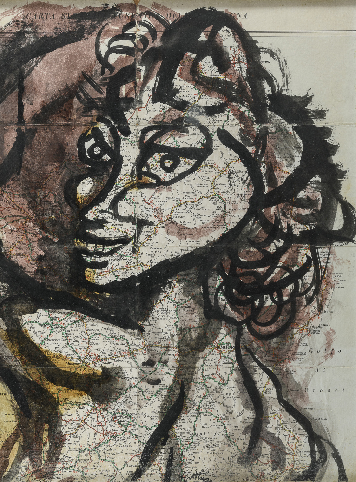 CHINA E GOUACHE RAGAZZA SARDA DI RENATO GUTTUSO