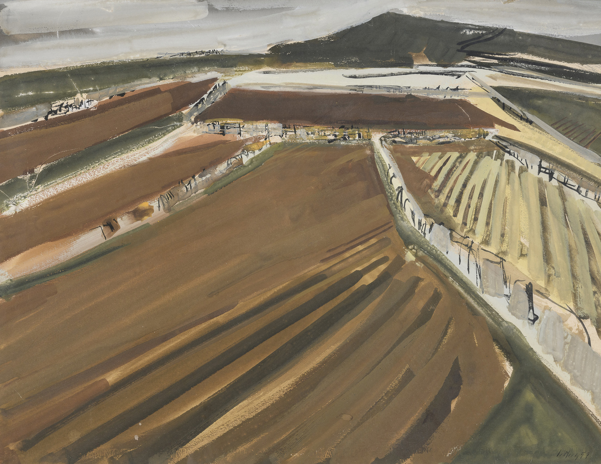 GOUACHE PAESAGGIO DI JEAN LE MERDY, 1957