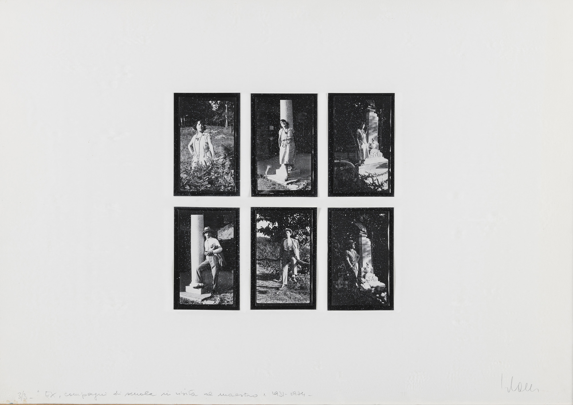 Sei fotografie vintage applicate su cartoncino, cm. 50 x 72