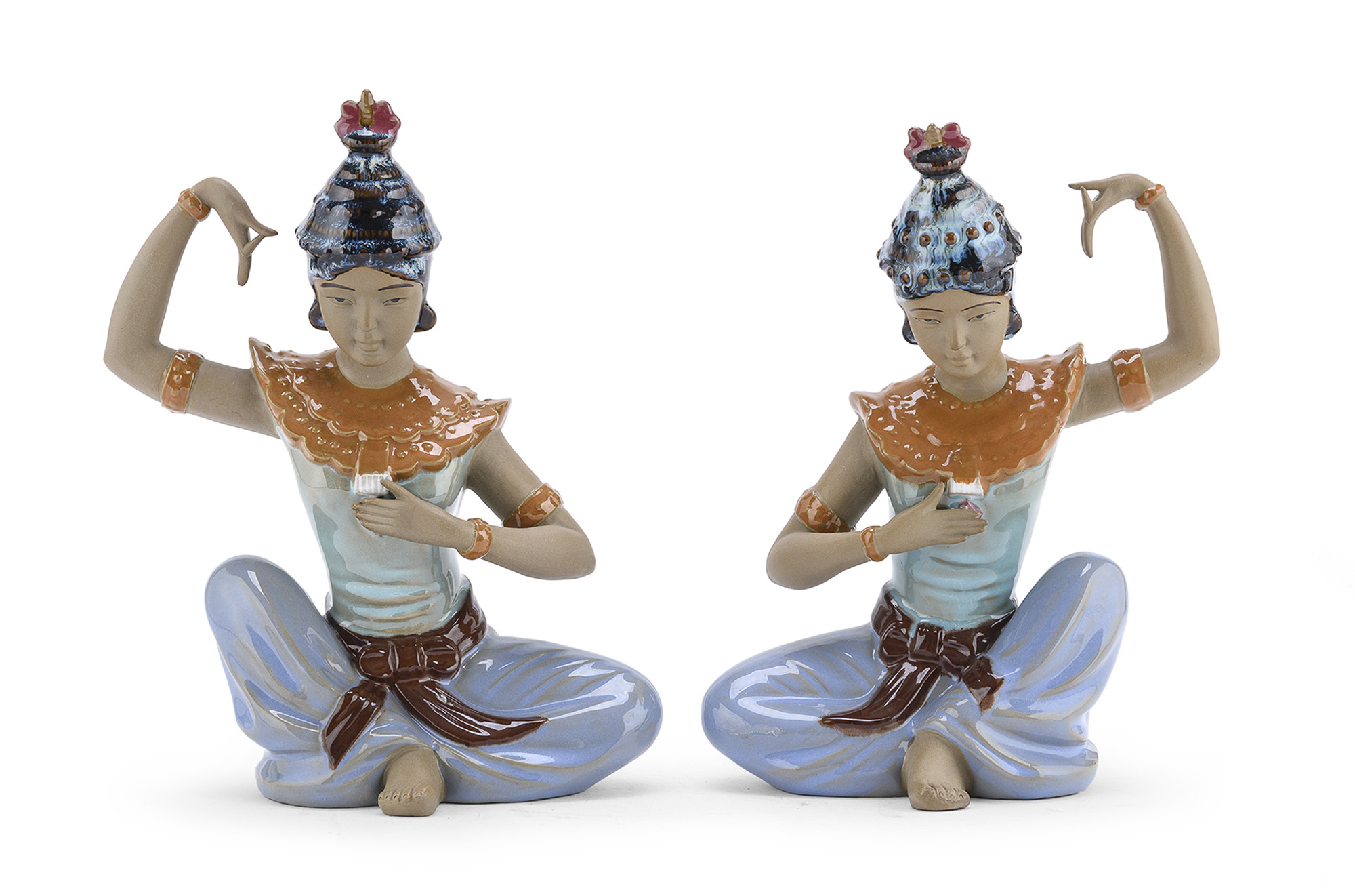 COPPIA DI DANZATORI TAILANDESI, CERAMICA WANJIANA CINA