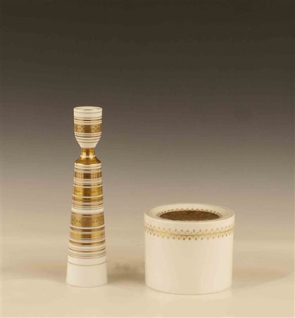 Lotto composto da una scatola ed un candeliere in porcellana bianca e parzialmente dorata, manifattura Rosenthal.