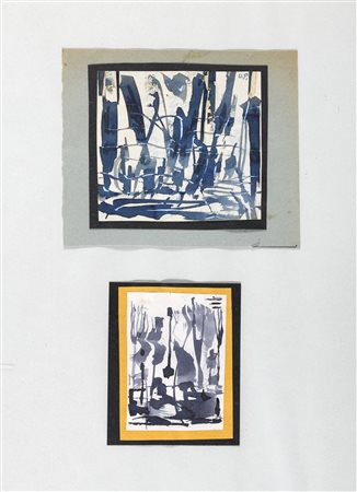 Due mini-disegni ad acquerello su carta, cm. 8,5 x 9,5 e cm. 7,5 x 5