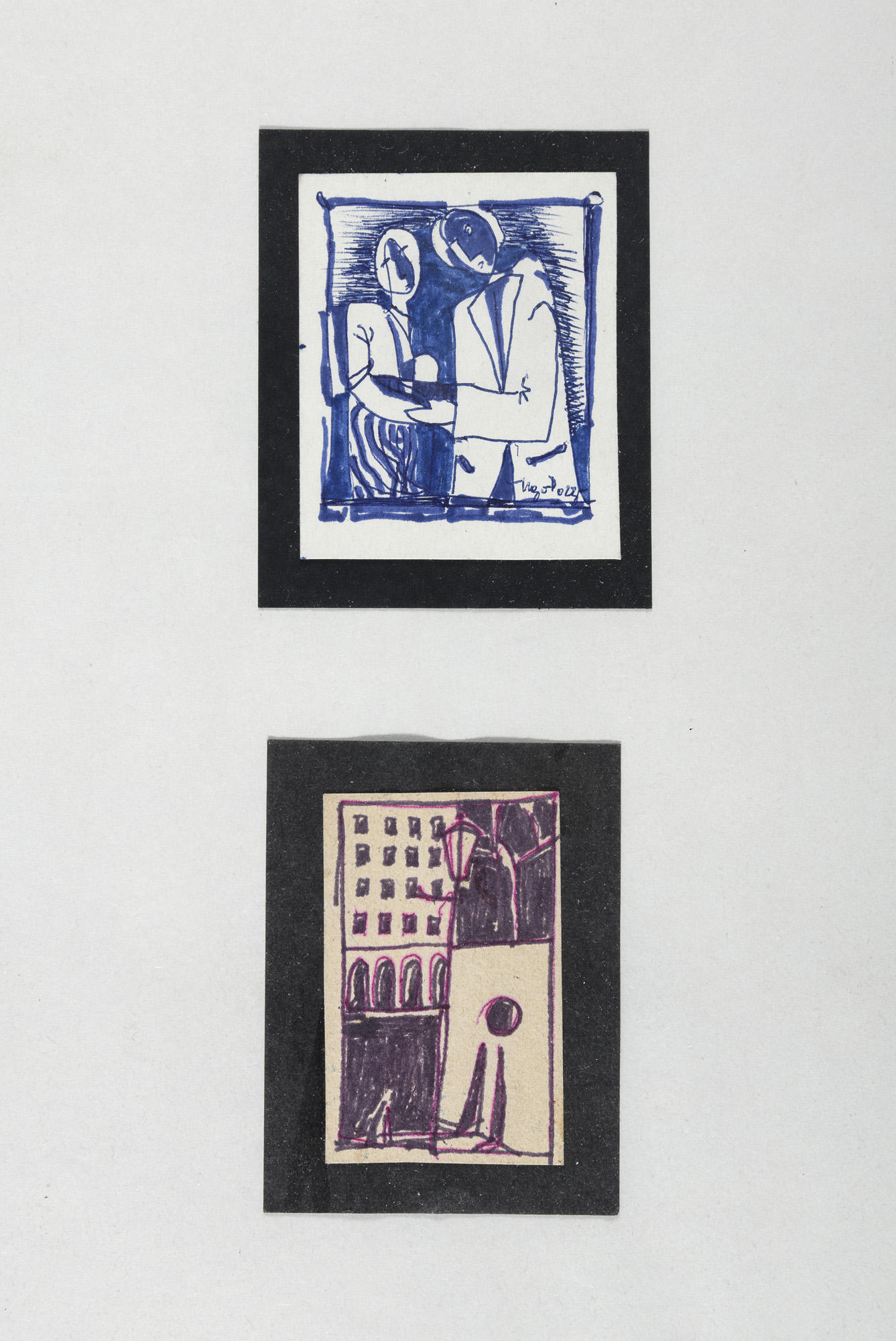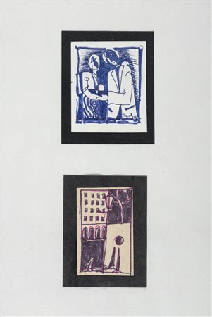 Due mini-disegni a tecnica mista su carta, cm. 7,5 x 6 e cm. 7 x 4,5