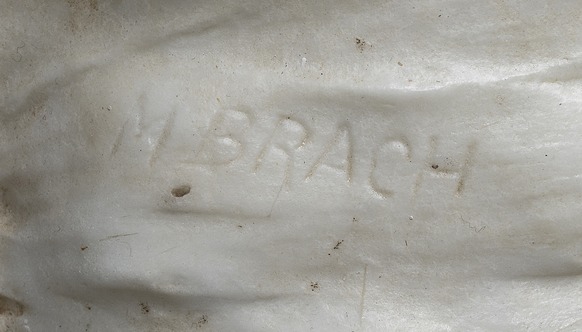 Scultura in marmo bianco statuario, cm. 82 x 70 x 40